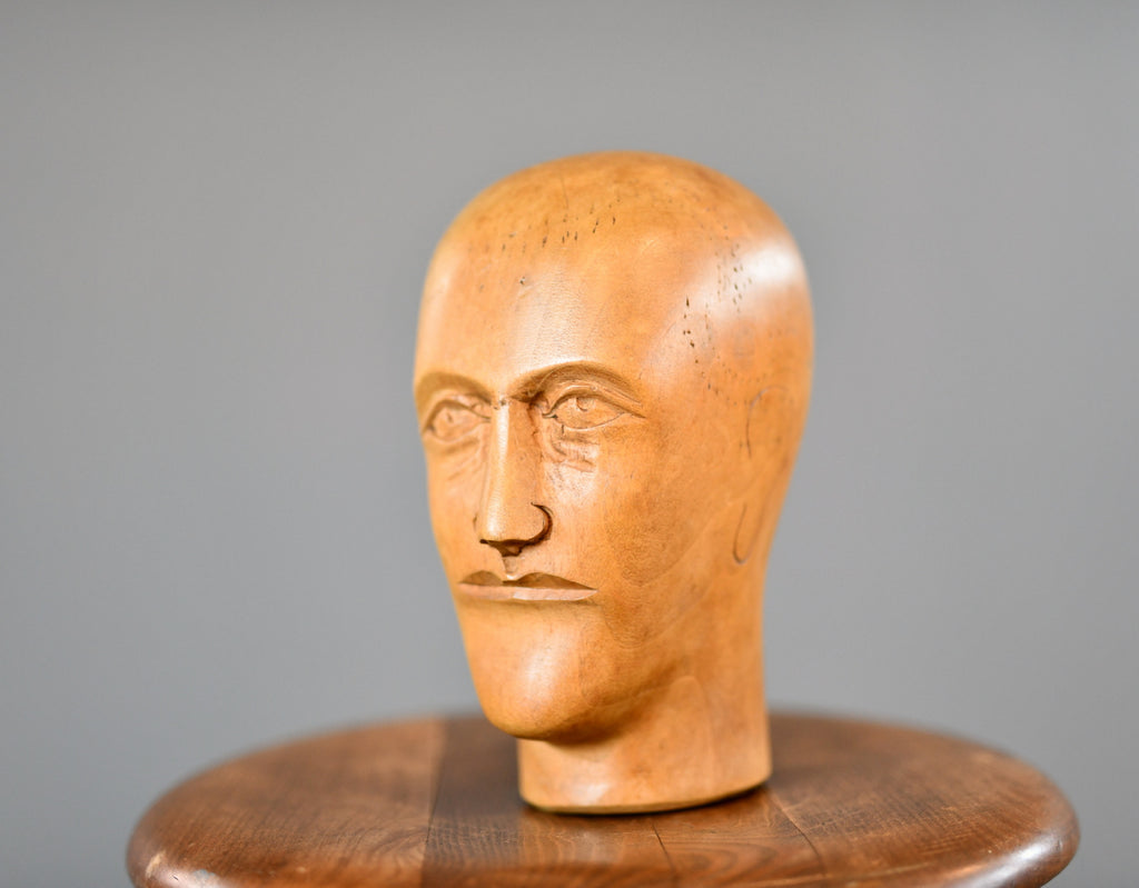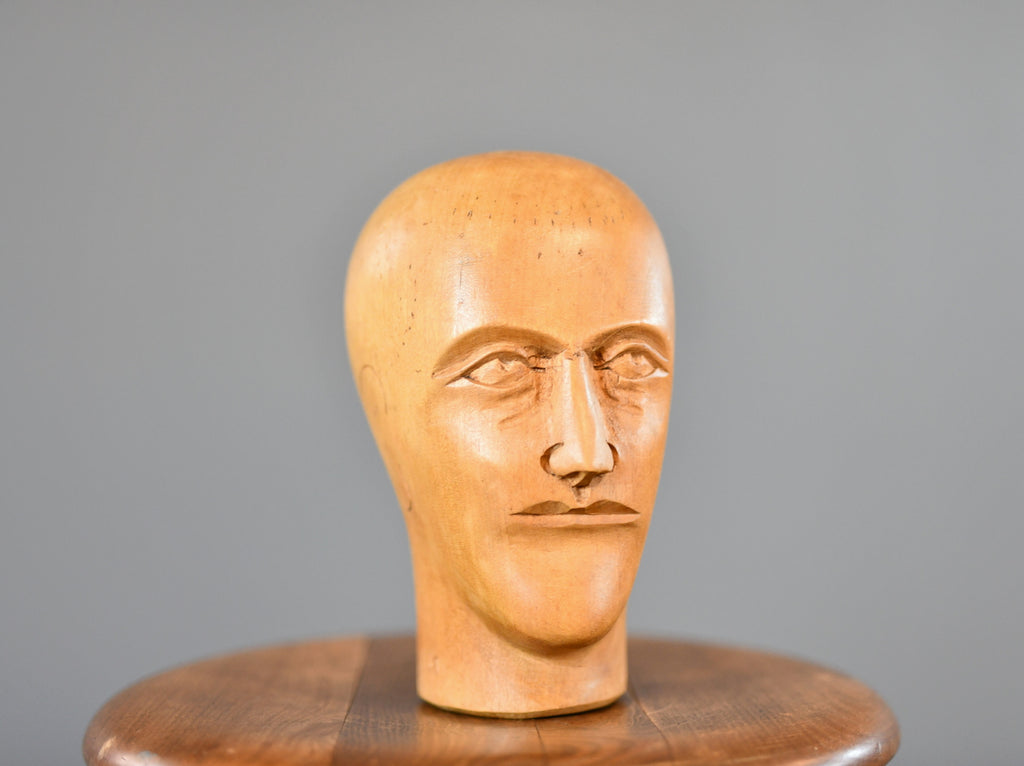 German Carved Wooden Milliners Head Circa 1910
