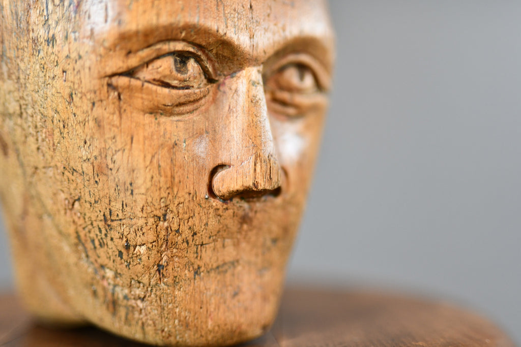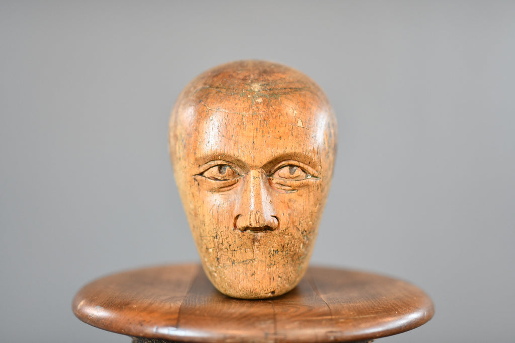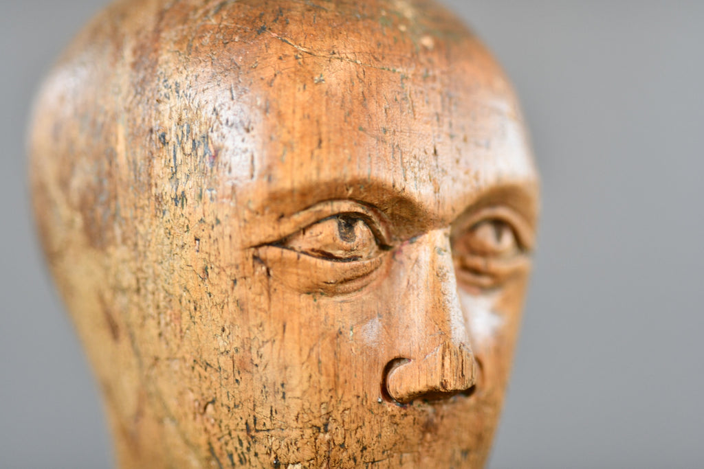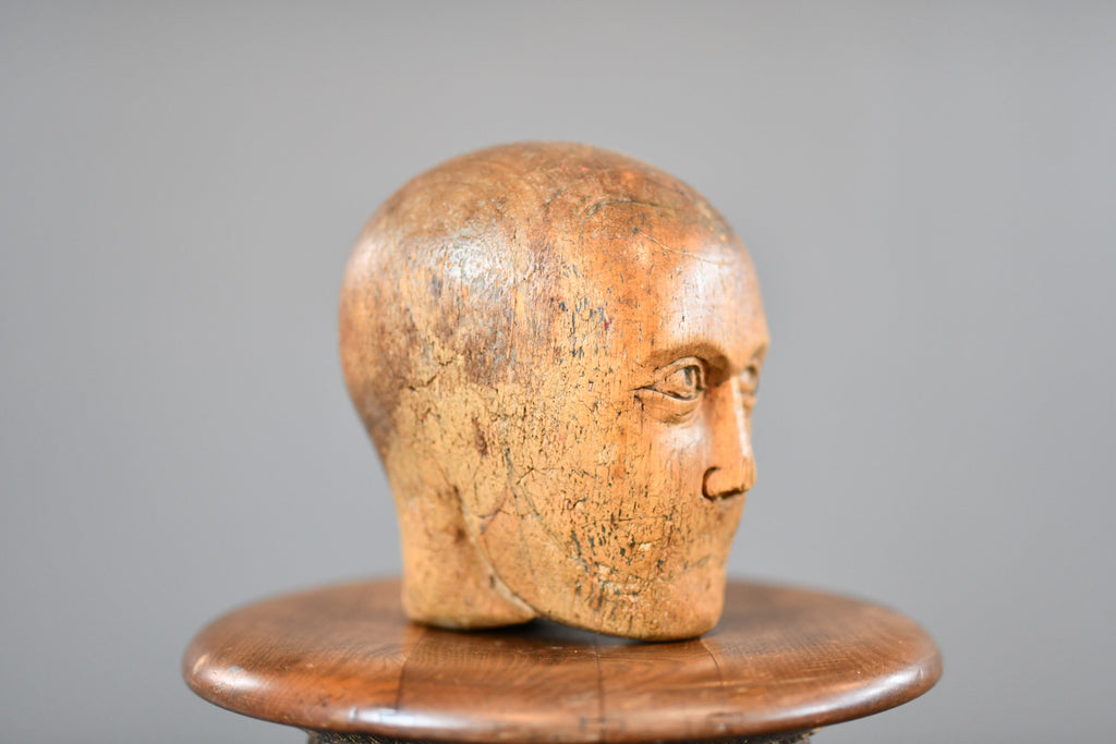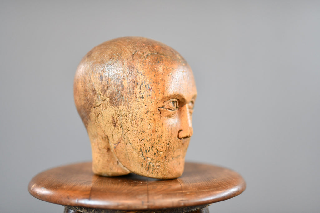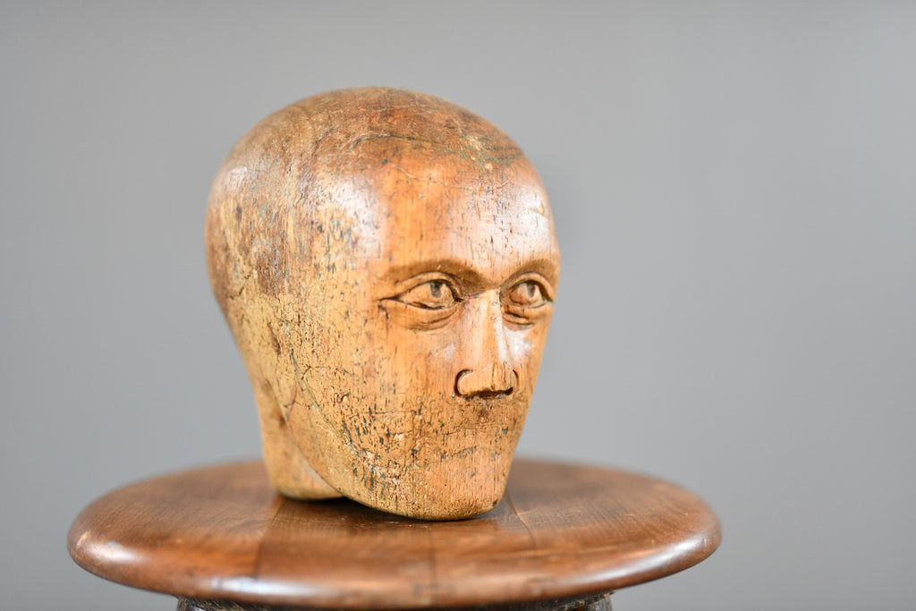 German Carved Wooden Milliners Head Circa 1910