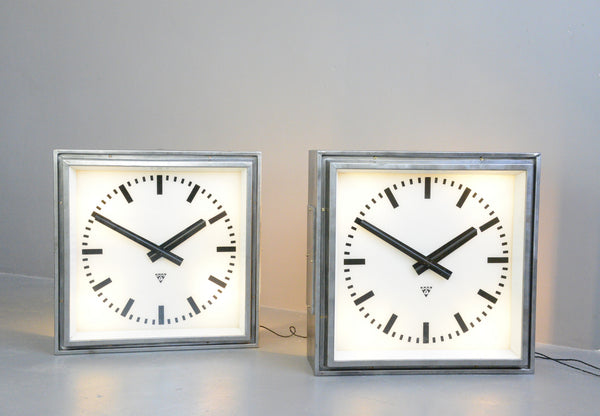 XL Light Up Station Clocks By Pragotron Circa 1950s