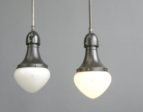Kandem Model 755 P40 Opaline Pendant Lights Circa 1930s