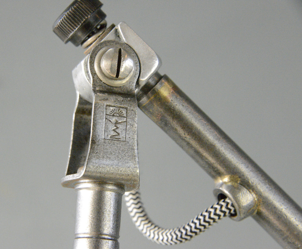 Midgard was founded in 1919 in Auma / Thuringia by the engineer Curt Fischer. Originally for internal needs of his machine factory IWA Ronneberger & Fischer (industrial plant Auma), Curt Fischer developed scissors lamps and articulated lamps. This is why he is considered the inventor of the "tractable light". The in these days widespread ceiling-mounted pendulous lampshades provided only static light from above. As such, the entrepreneur regarded them as rather inflexible. This type of lightning caused the workers to cast shadow over their workpieces themselves. Curt Fischer sketched and manufactured first prototypes of articulated lamps by passing the live cable through tubes and developing articulations between the tubes. He perfected the system, developed many multi-armed desk lamps, work lamps and wall lamps. Within few years he turned to be a luminaire manufacturer which he called Midgard (as the Norse Mythology called the bright Middle Earth inhabited by people). Early on his designs were recognised and valued by Walter Gropius, among others, and hence used at the Bauhaus. Gropius supported Fischer's developments. Their original correspondence has been preserved until the present day.