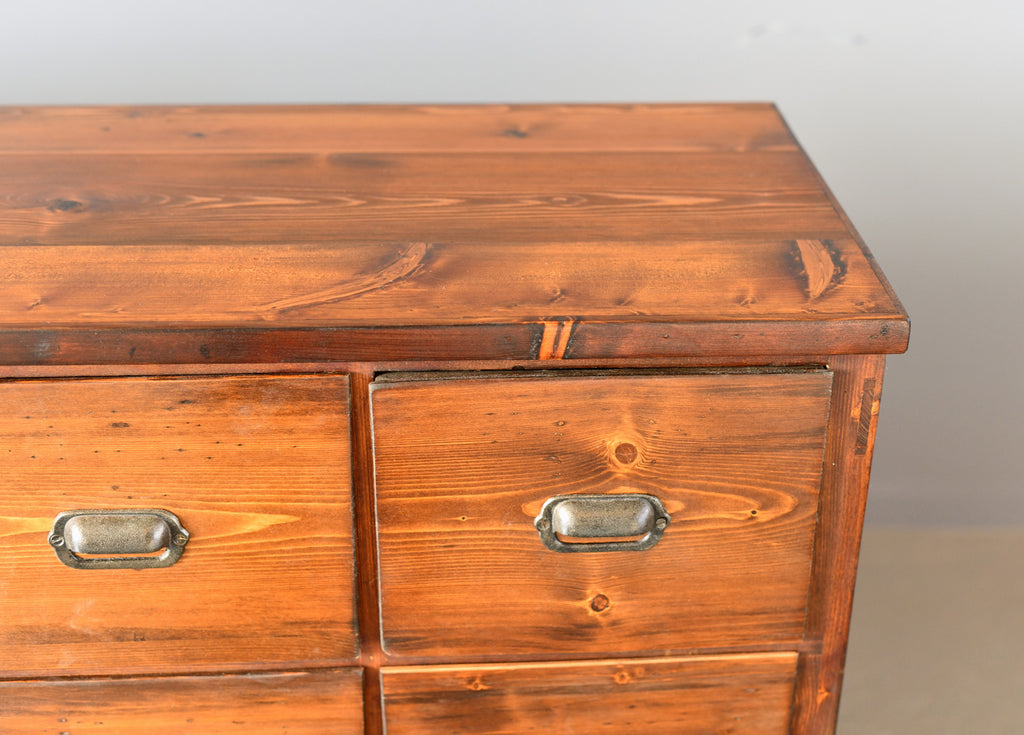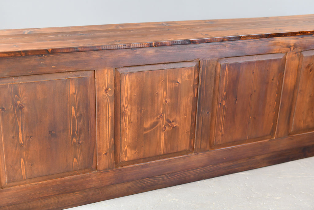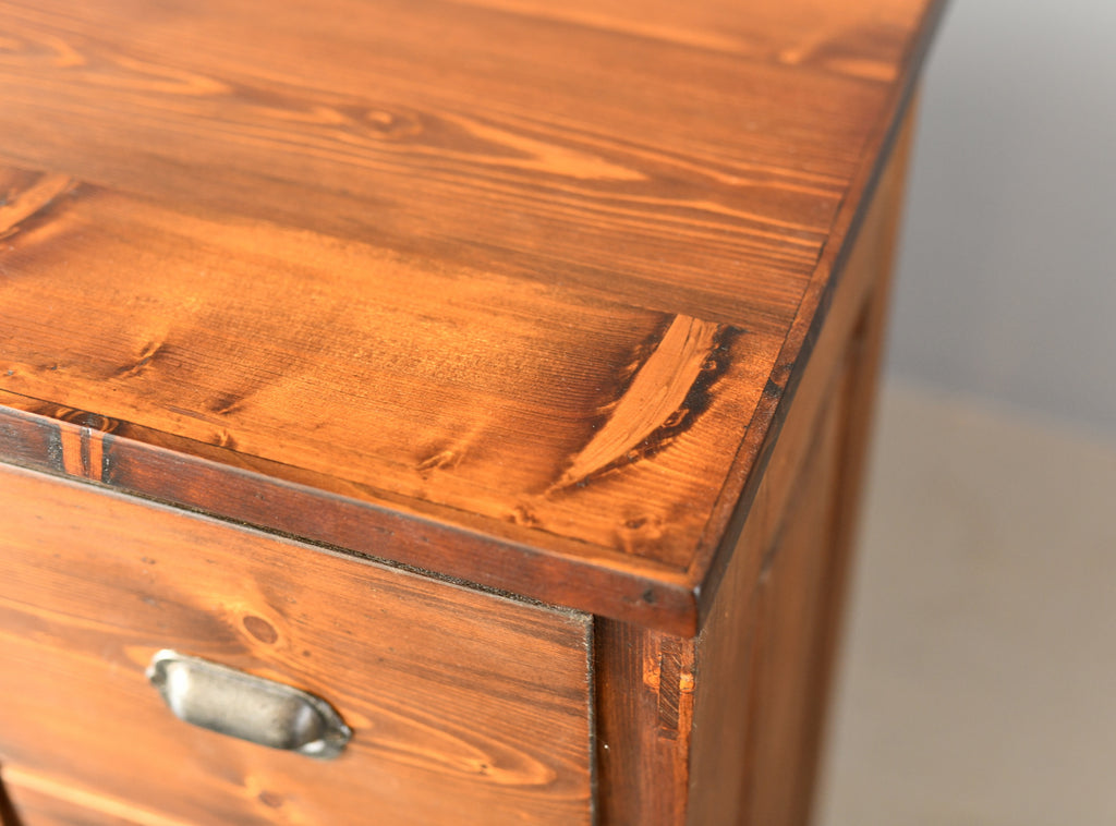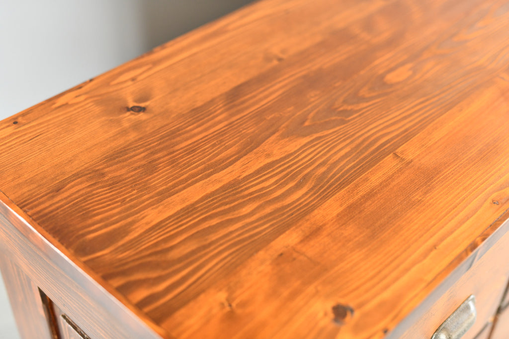 - The top has been given several coats of hard wax oil, so waterproof and wipeable. This also means the counter top is food safe