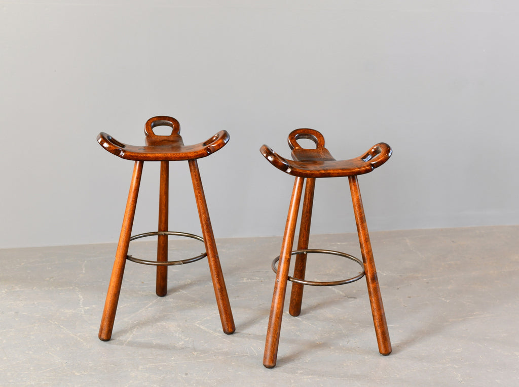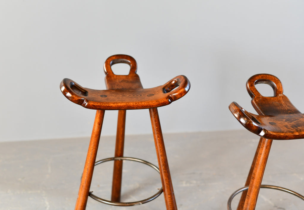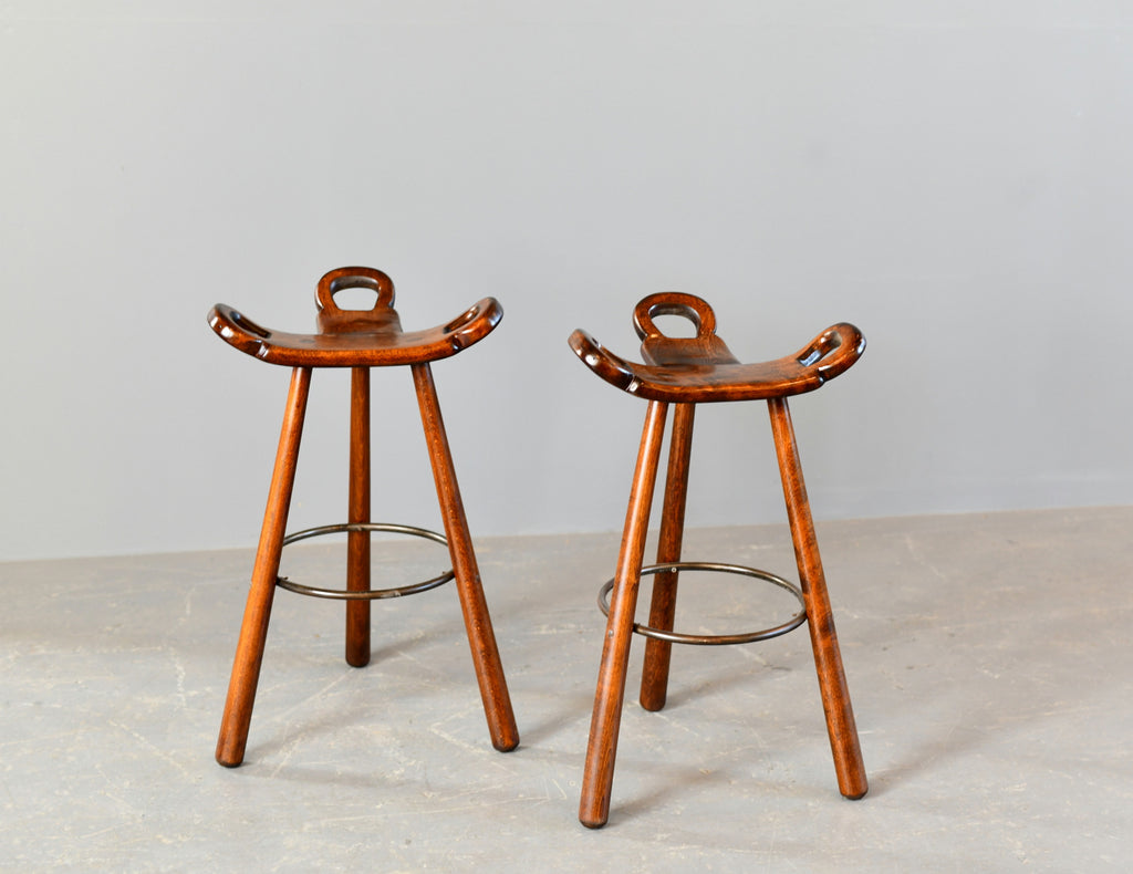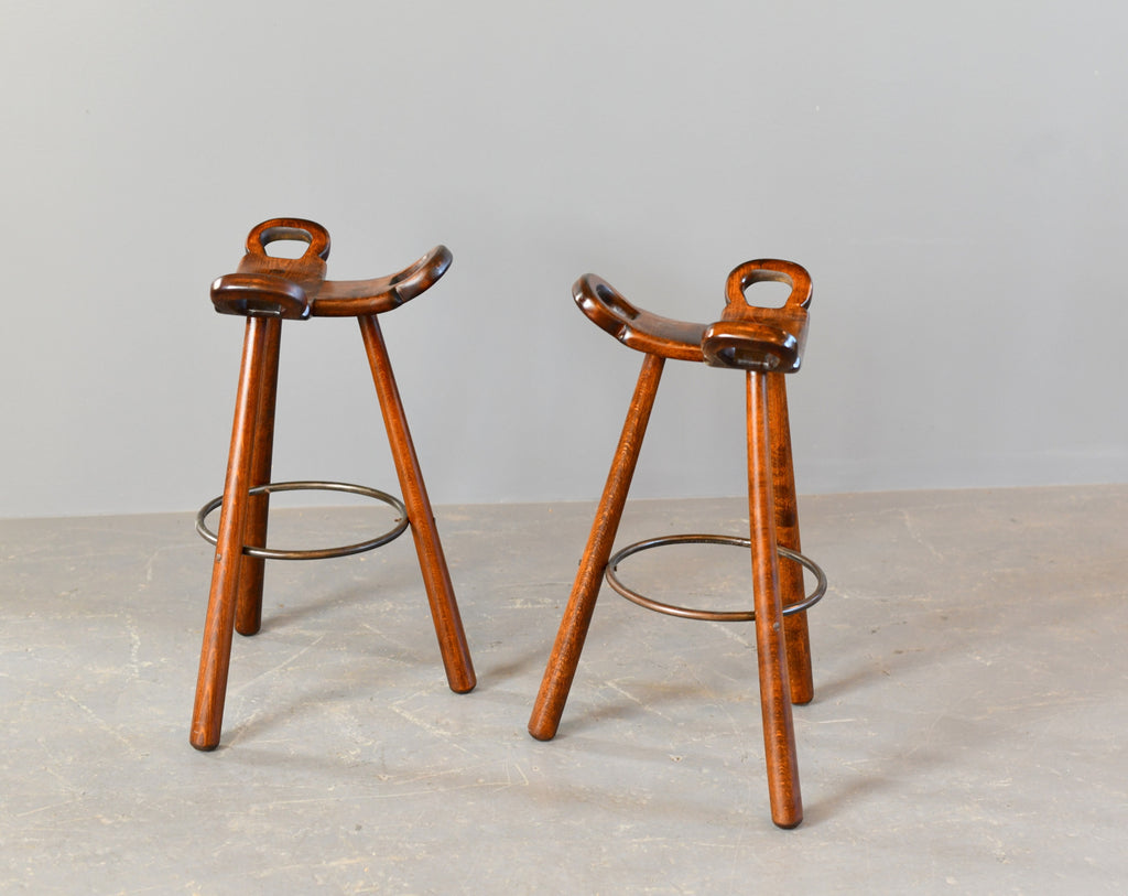 Ottos AntiquesMid Century Brutalist "Marbella" Bar Stools by Sergio Rodrigues Circa 1970s