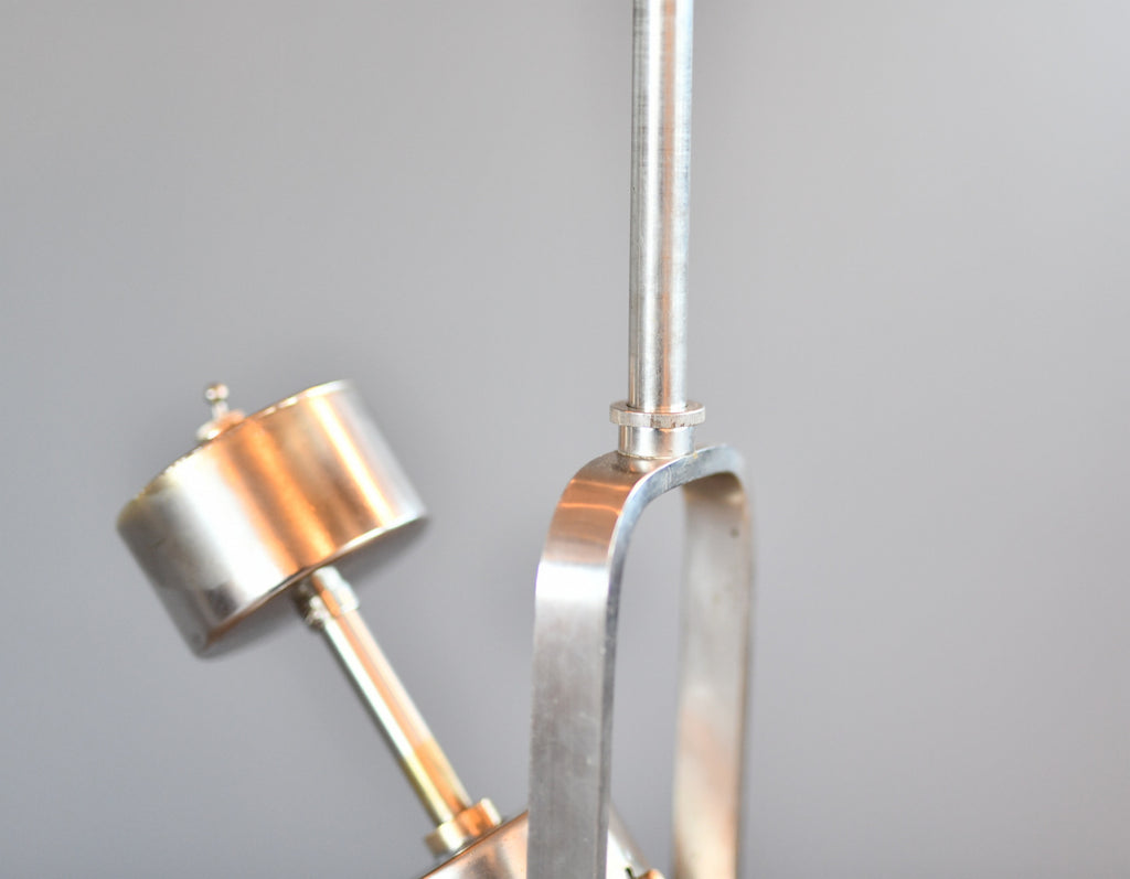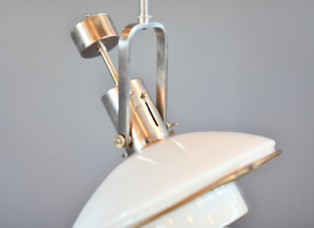 As the distributor of Poul Henningsen's PH lighting range in Germany, Otto Muller decided to produce his own version of these highly successful lights. Manufactured under the Sistrah trademark It was Otto Müller, who, in close tandem with the students at the ‘Institute of Light technology of the Technical University of Karlsruhe’ developed the lamps. Mullers designs were the Teutonic equivalent of the PH lighting system. The idea behind their design was to make the bulb invisable in order to create a dazzle free light. From their inception in 1931 Sistrah and Muller produced a range of lighting from desk lamps, pendant lamps, medical lamps, billiard lamps and even street lamps. Their clever branding slogan ‘Sie strahlt hell’ (She burns brightly)(SISTRAH), their annual catalogues and the amazing built quality made Sistrah the lamp of choice for many business owners.