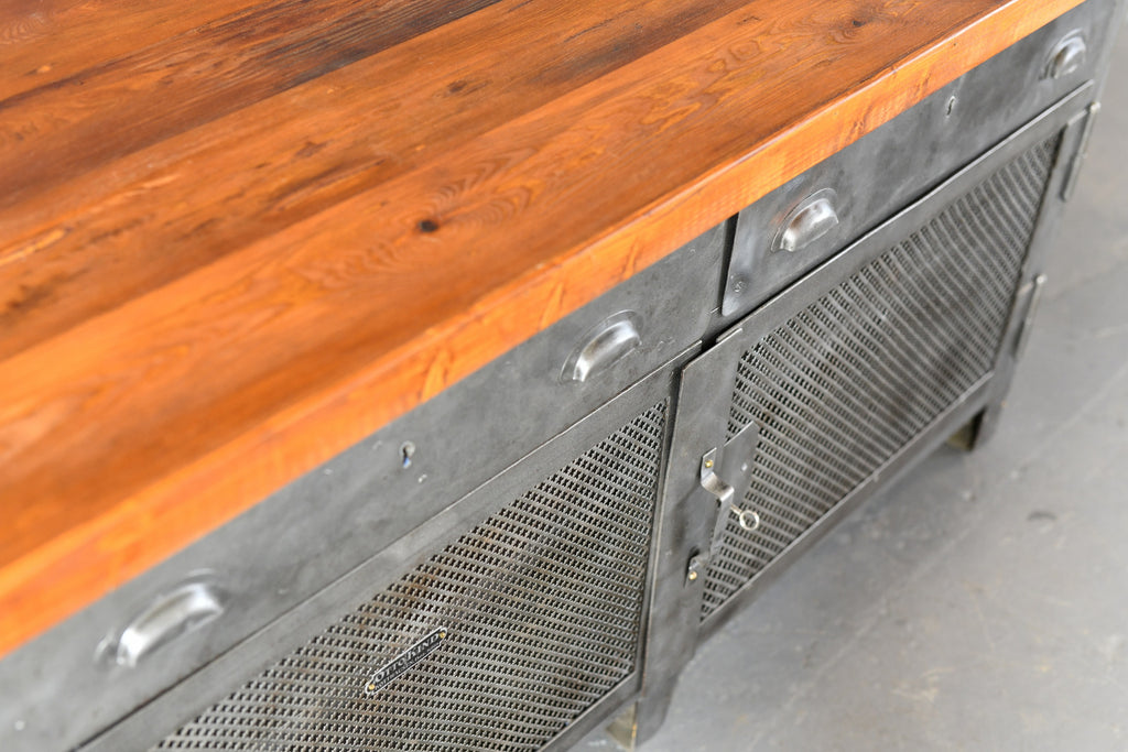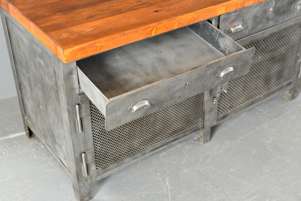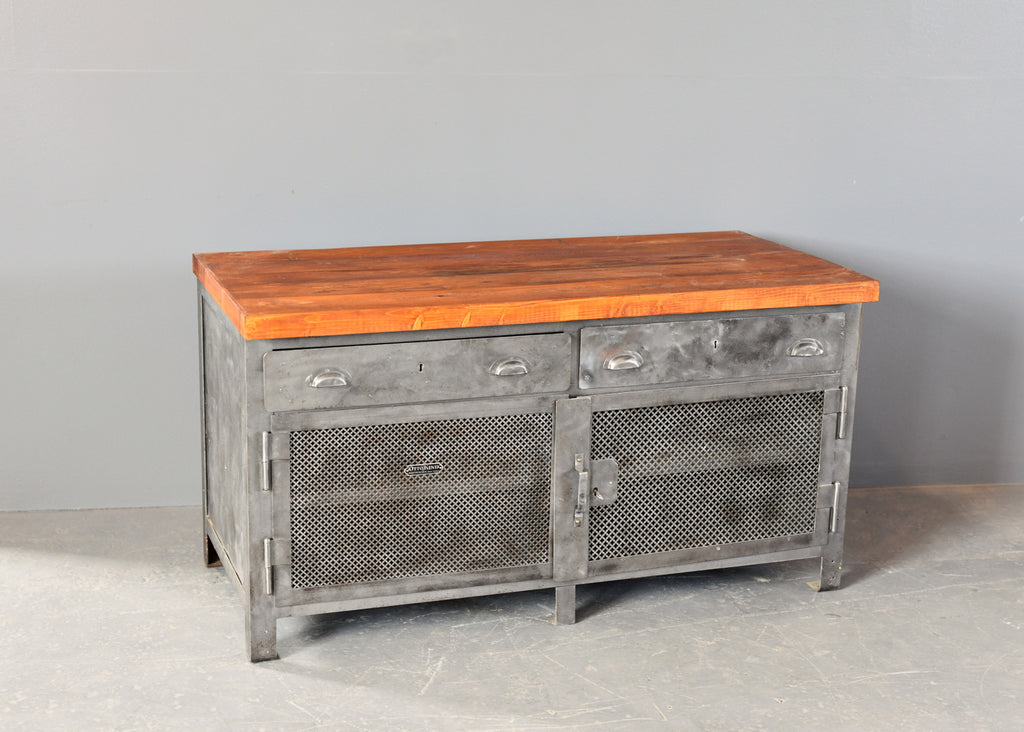 All the doors open and latch smoothly, the entire cabinet has been sandblasted, cleaned and clear lacquered. There will be some wear in the form of dents to the metal sheeting on the sides of the cabinet.