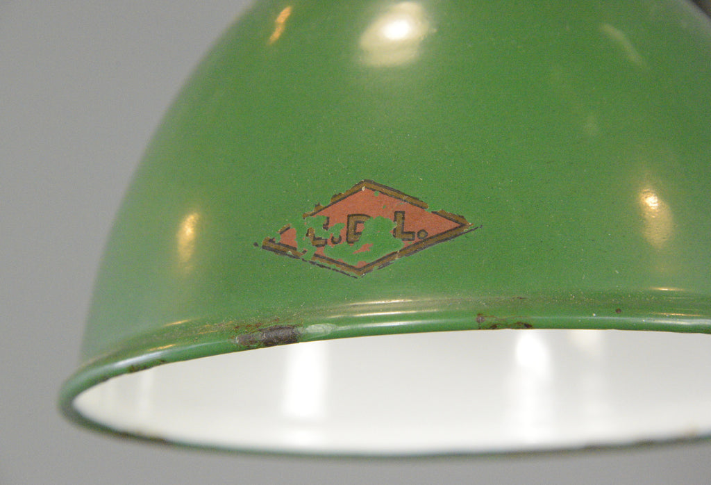 Fully re wired with modern electrical components, some patina and small chips to the enamel at the bottom tip of the inside of the shade