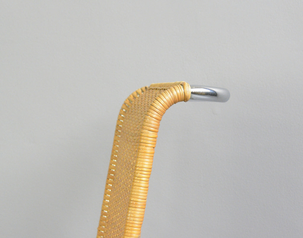 A couple of small pieces of rattan missing on one arm, chrome and stability of the chair are near mint