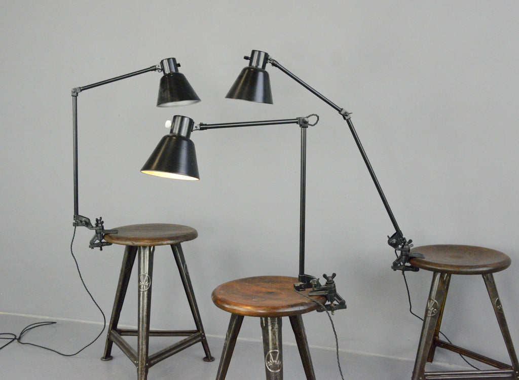 Clamp On Industrial Task Lamps By Schaco Circa 1930s