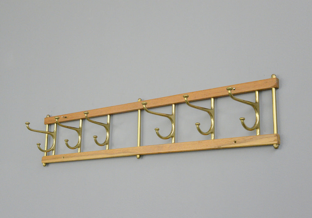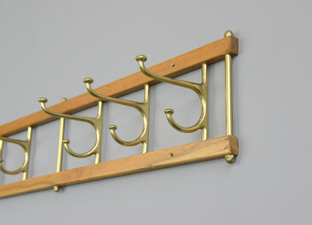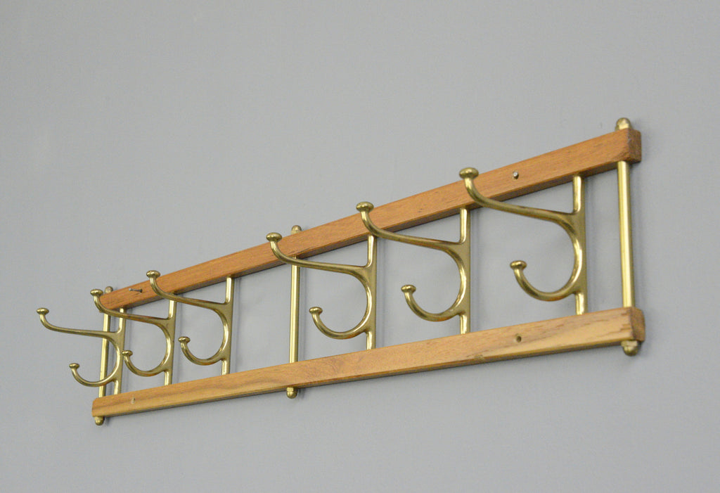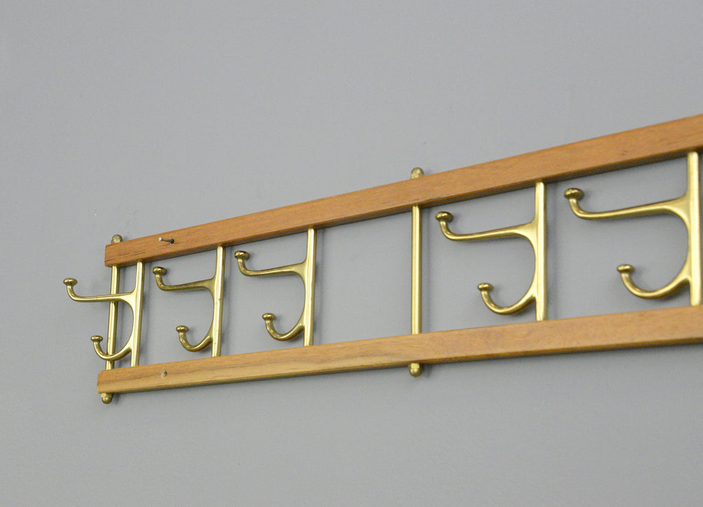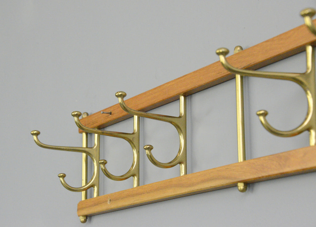 Danish Brass & Teak Coat Hooks Circa 1960s
