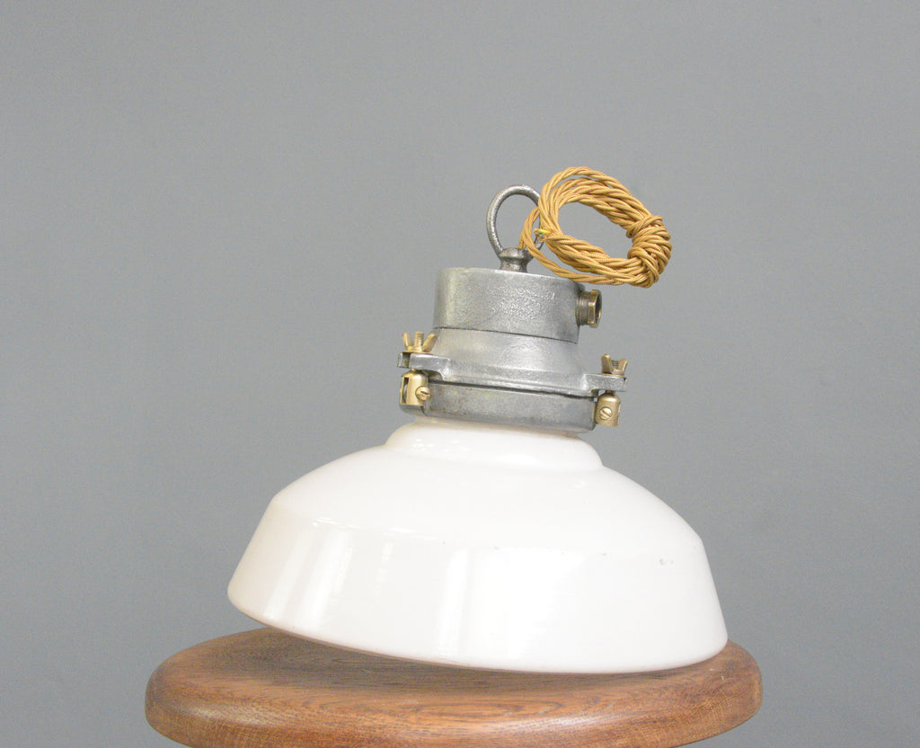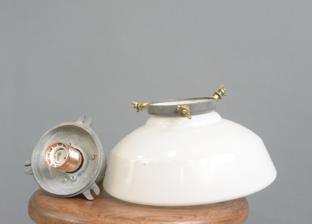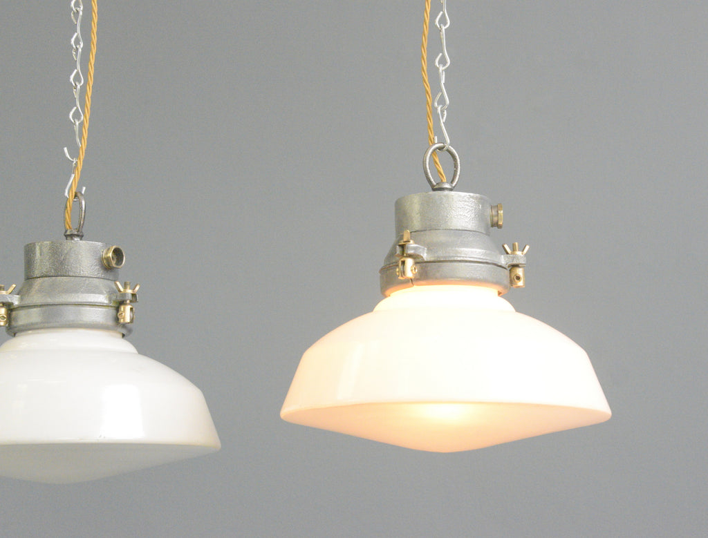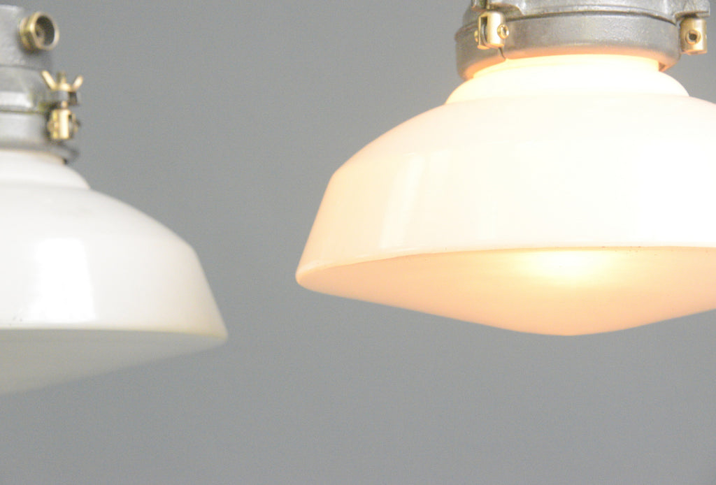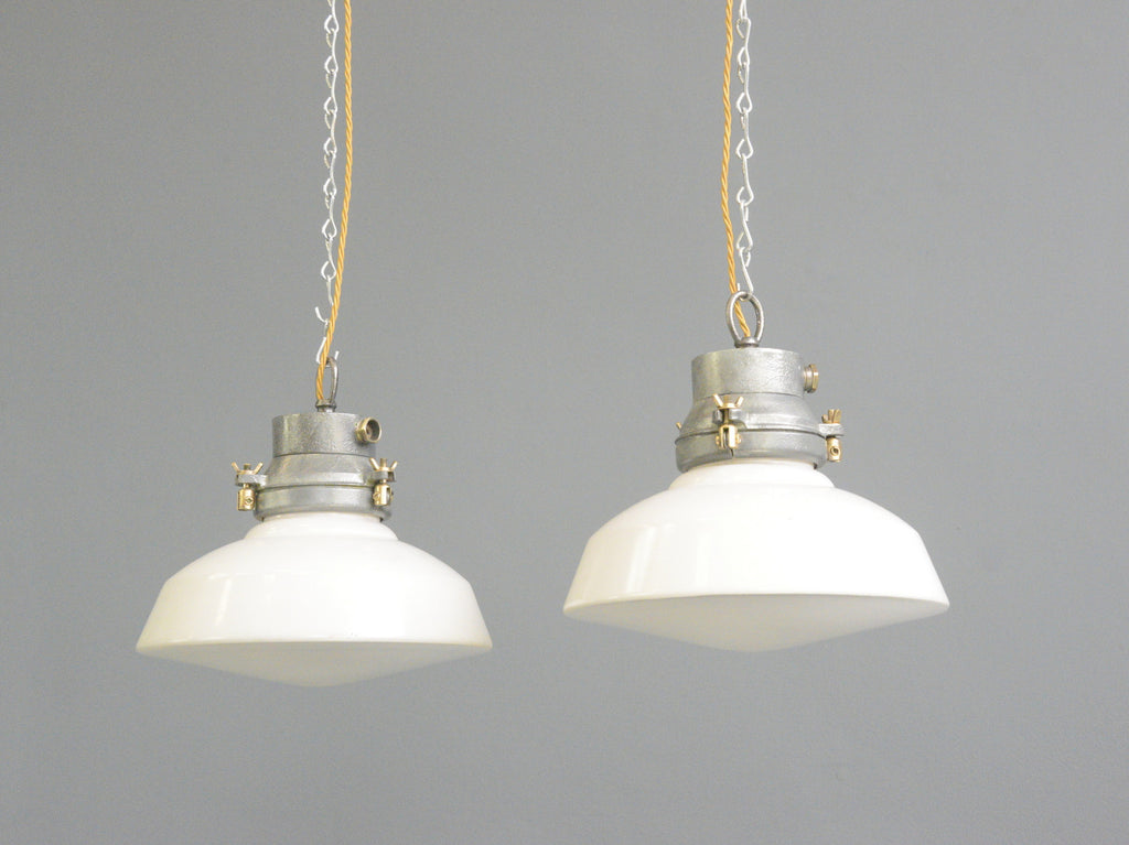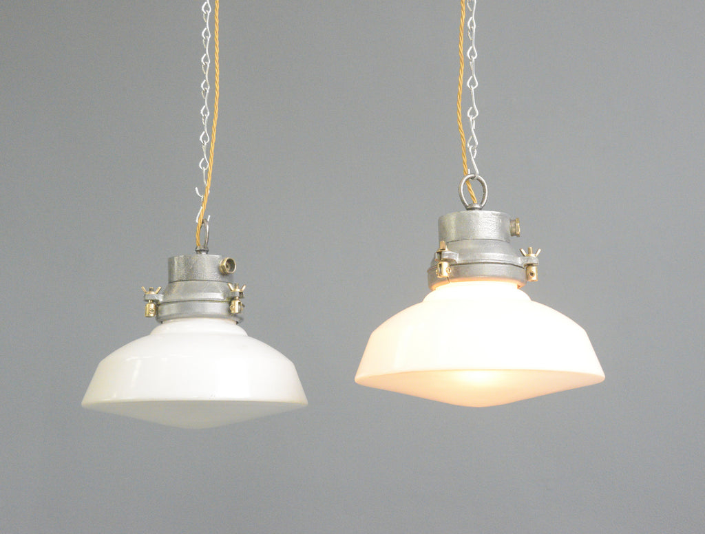 Otto's AntiquesDanish Industrial Opaline Pendant Lights Circa 1950s