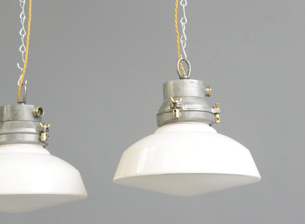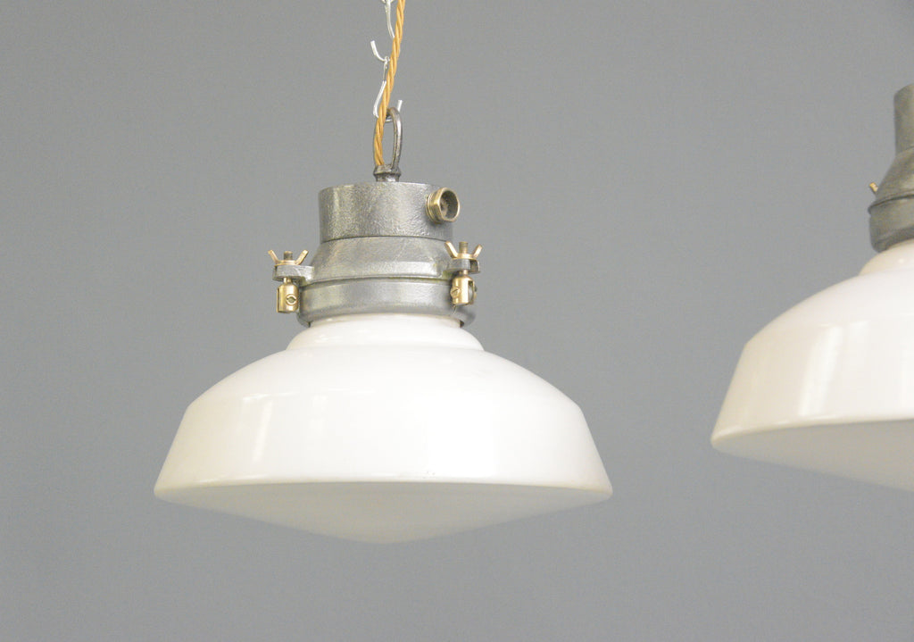 Danish Industrial Opaline Pendant Lights Circa 1950s