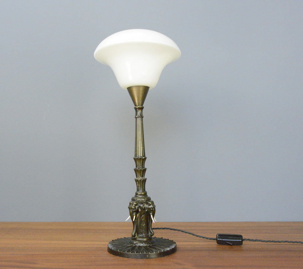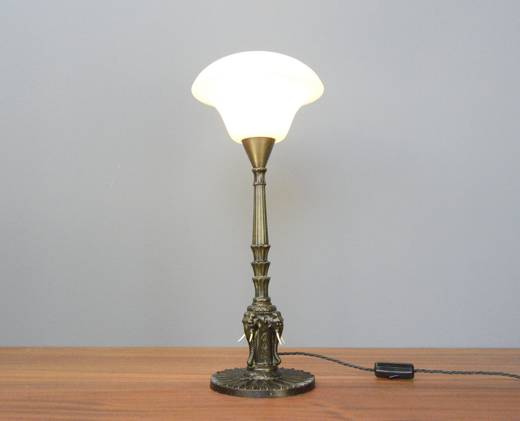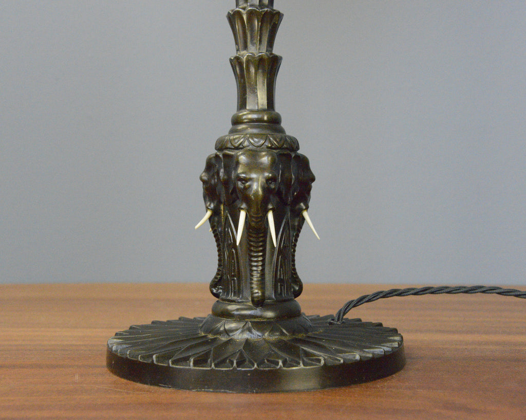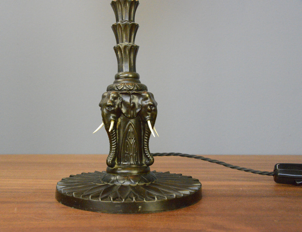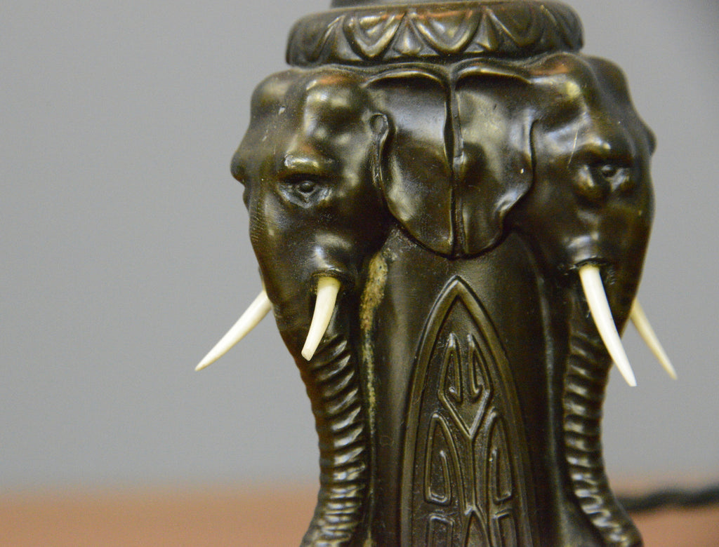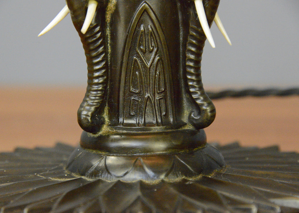 Fully re wired with modern electrical components, some light patina to the brass surface, one elephant has a small chip to one tusk and the base has had a historic repair