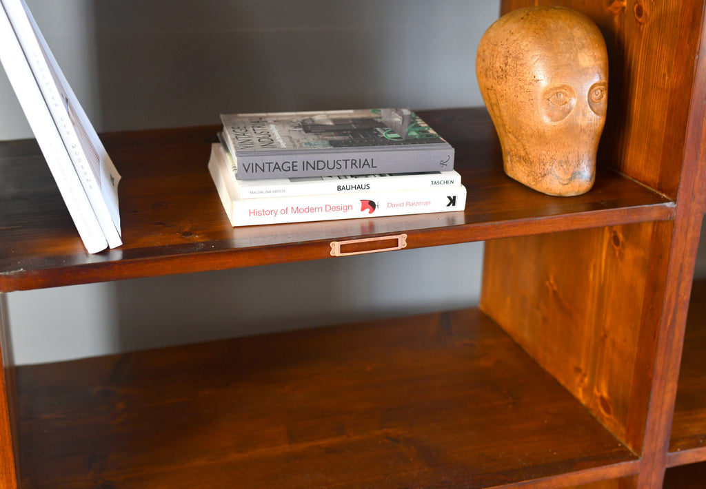 The shelves have been restored but will some show signs of wear in the form of dents and patina, the shelves has been given a coat of wax.
