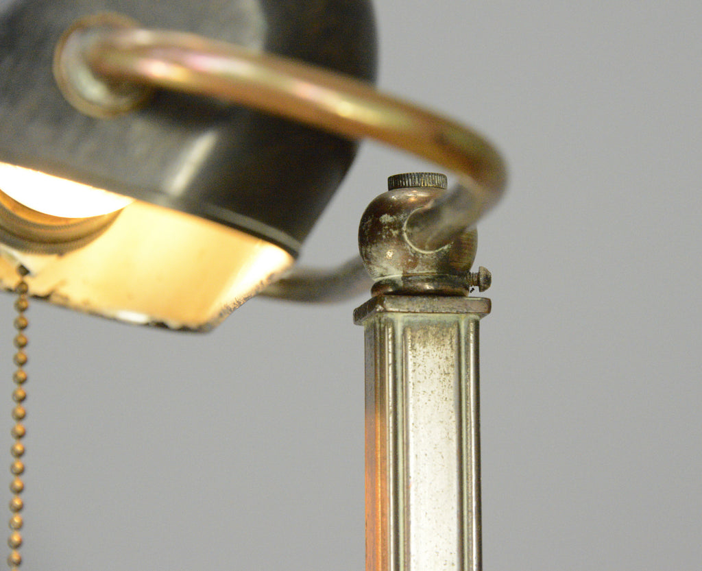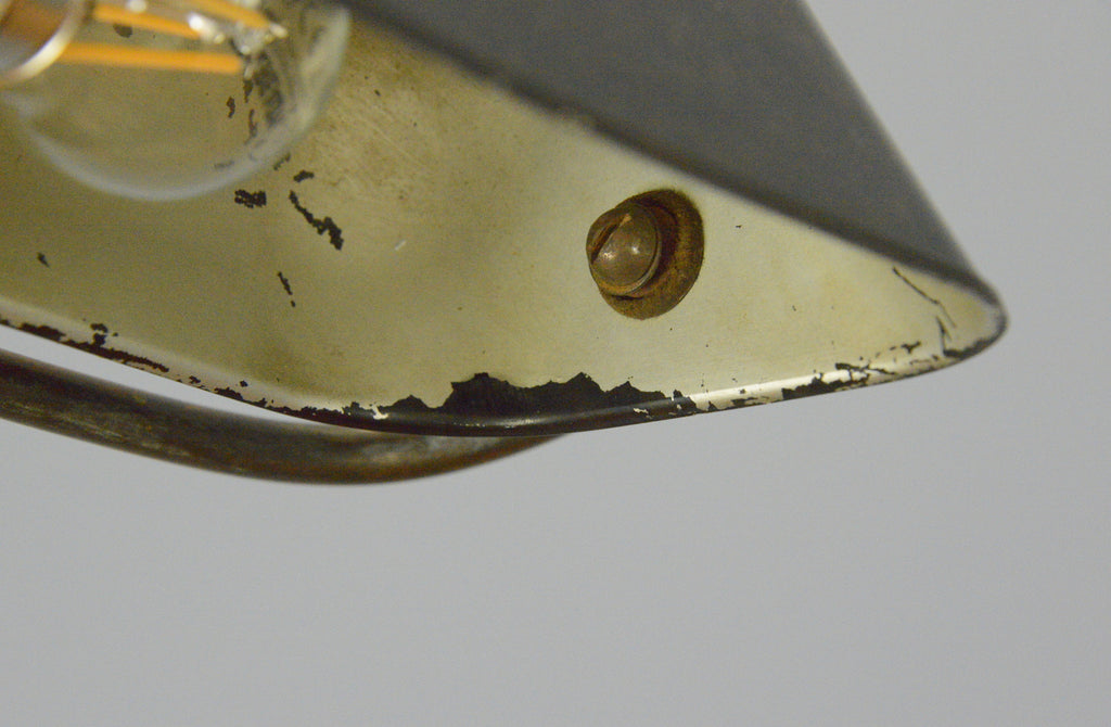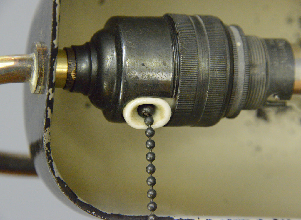 Fully re wired with modern electrical components, some light patina to the copper surface and some chips to the silver paint on the inner shade.