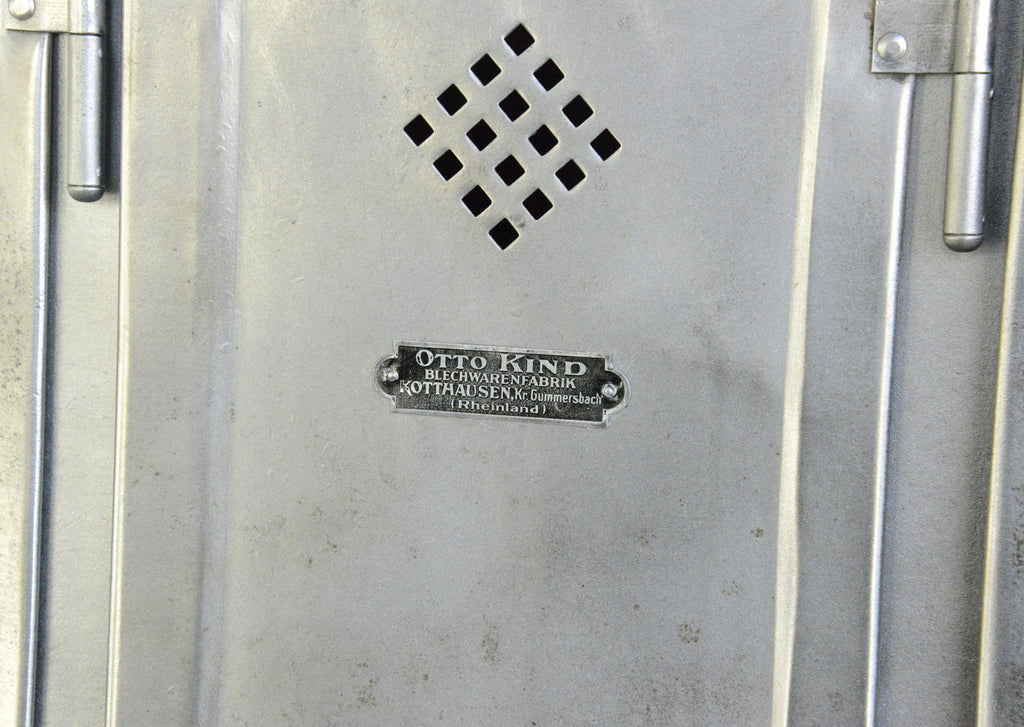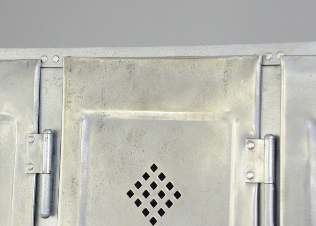 All the doors latch and open smoothly, the entire cabinet has been sand blasted and clear lacquered. The cabinet will show signs of wear and tear in the form of dents and age marks to the metal.