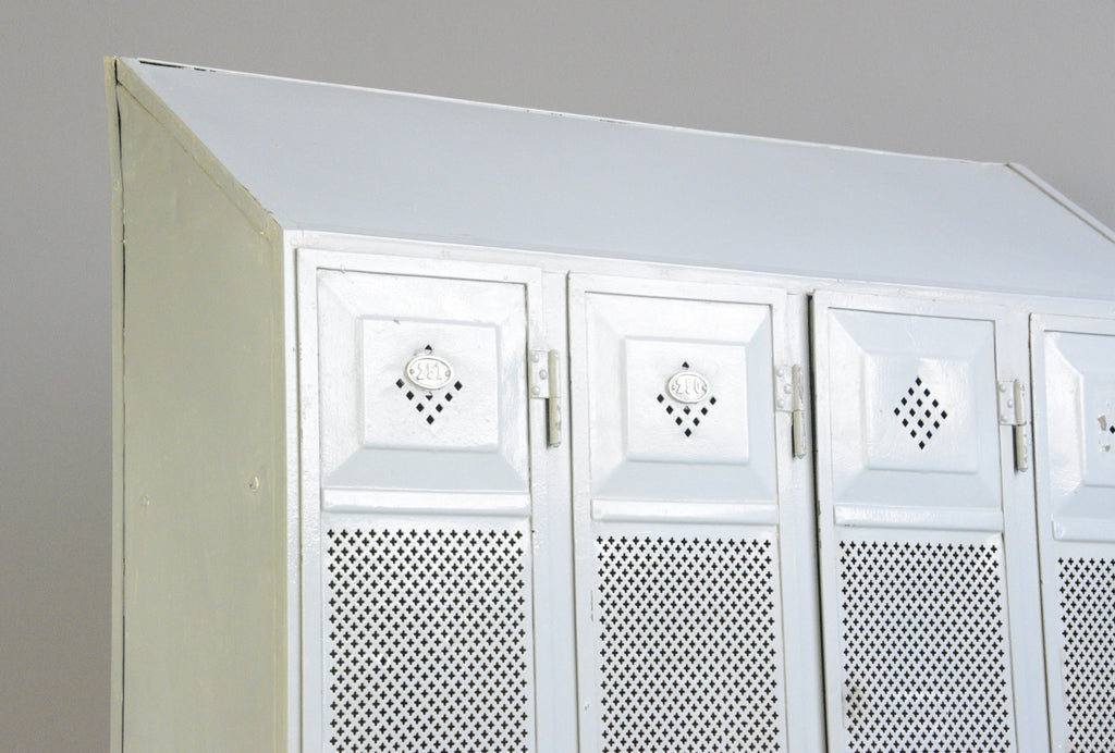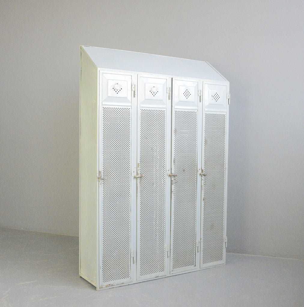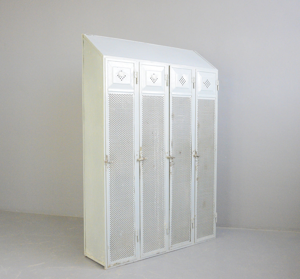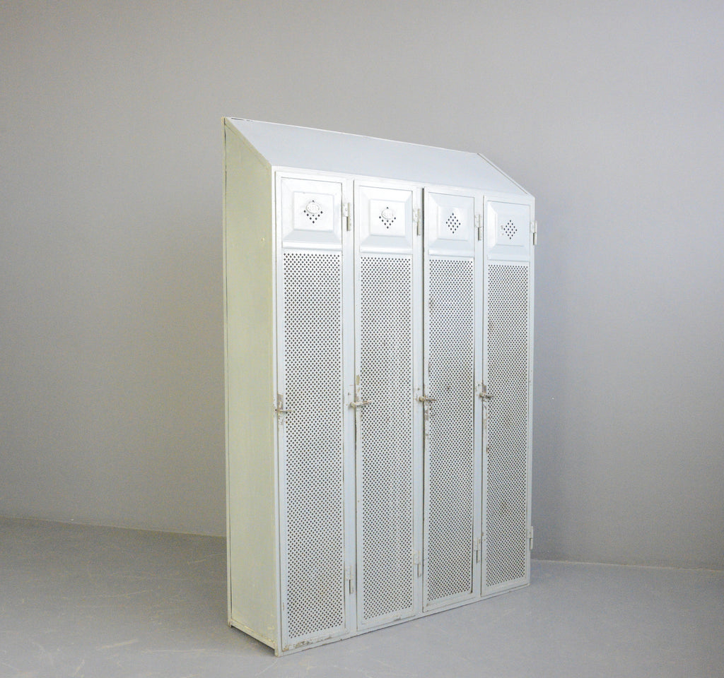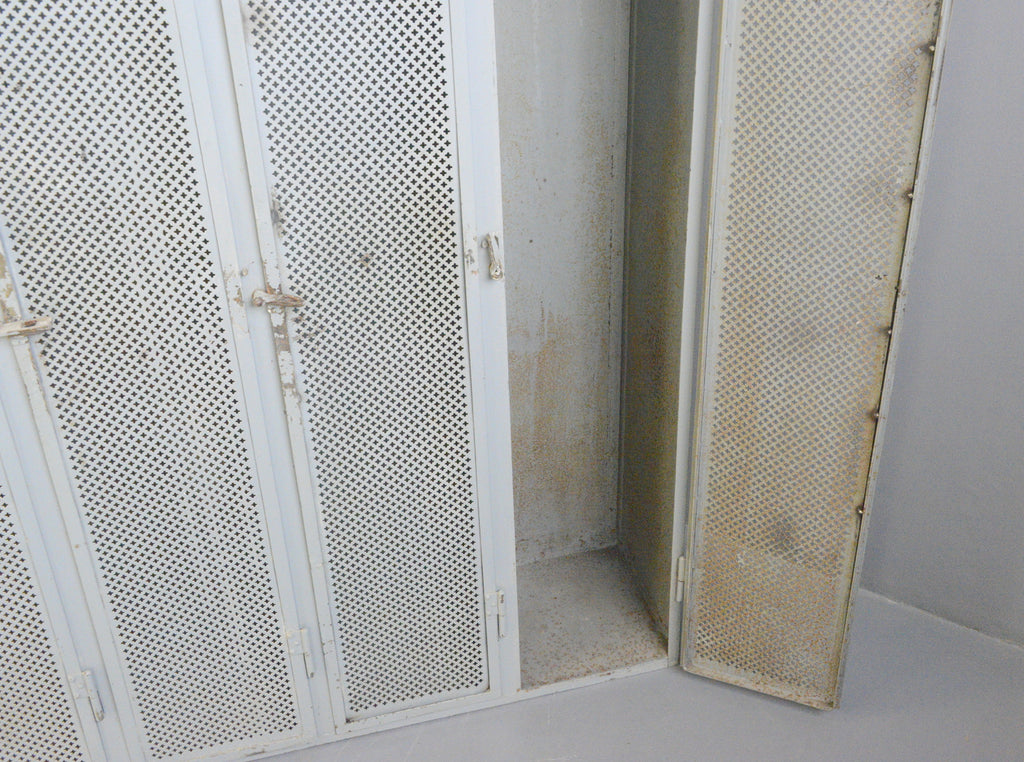 All doors open and latch smoothly and the unit has been cleaned inside and out. The lockers will show signs of wear in the form of dents, warping and some repairs.