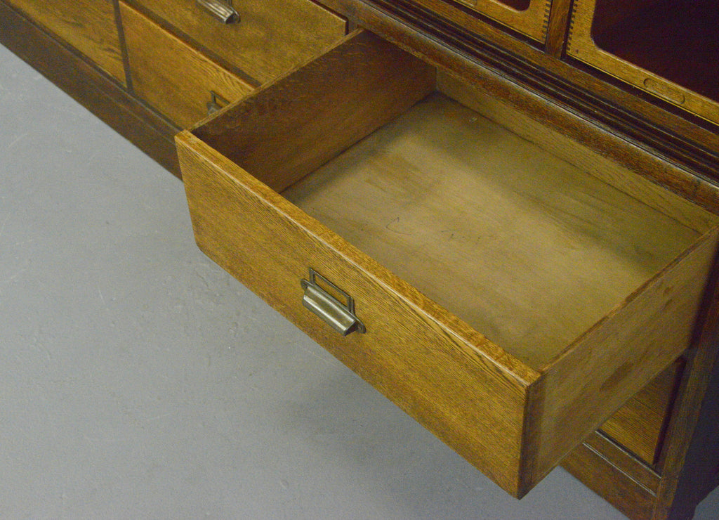The cabinet has been re stained and waxed with hardwax oil, it has also been treated for woodworm as with all of our wooden items.
