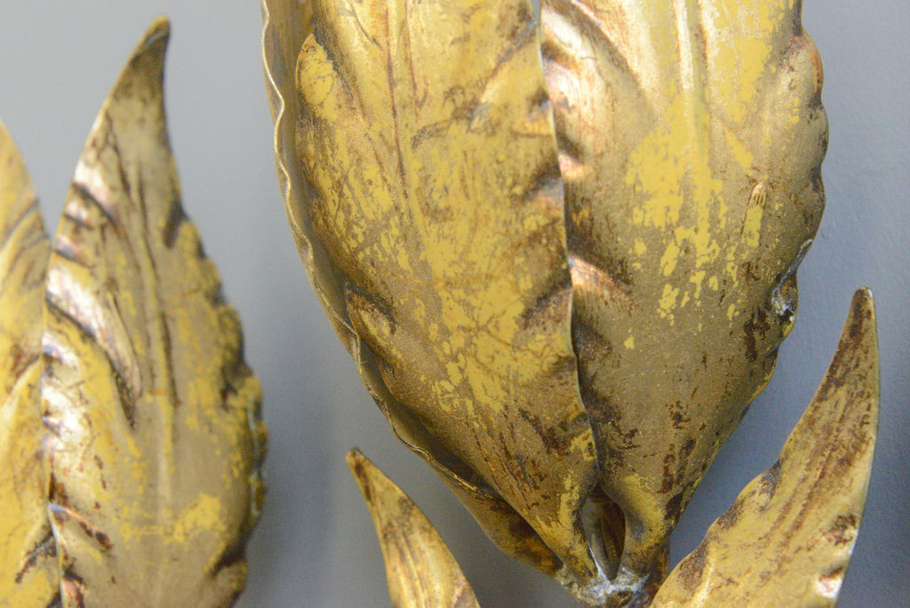 Gold Leaf Hollywood Regency Wall Light By Hans Kögl