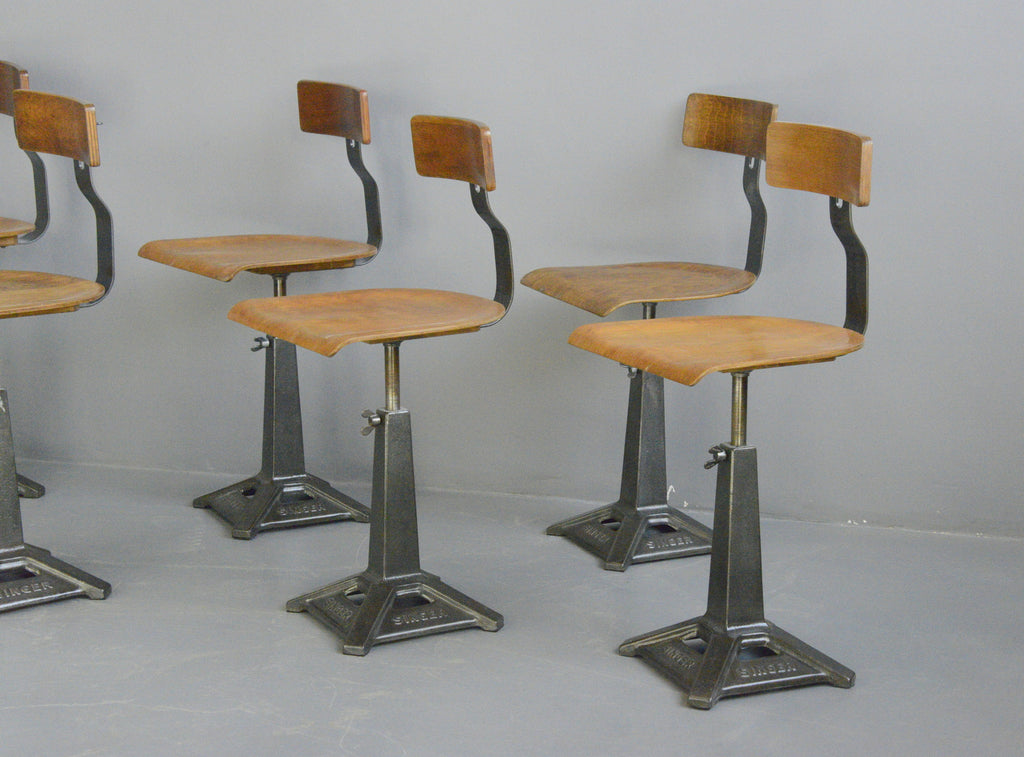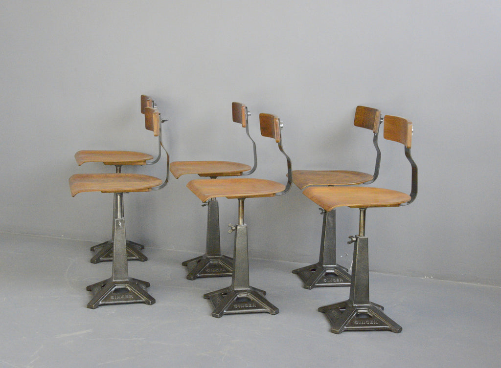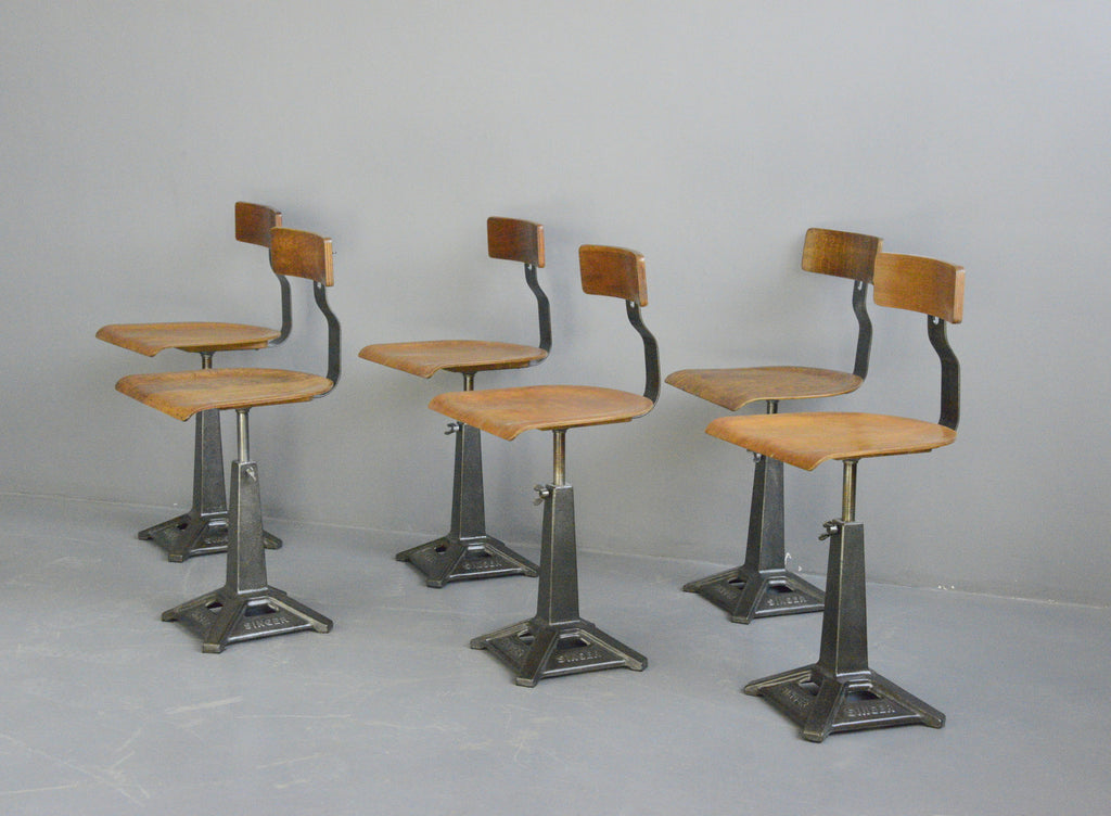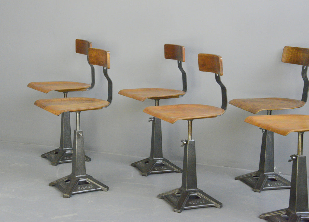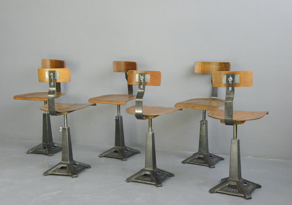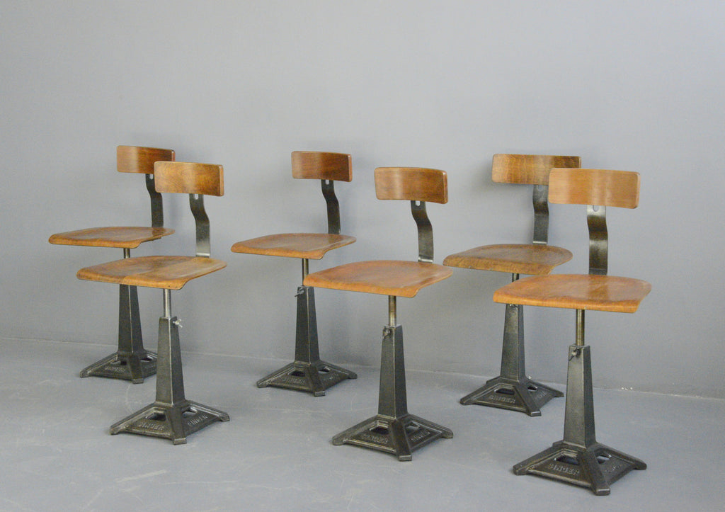 Fully functional, some light patina to the seats and one base has a small crack which has been repaired from the underside of the seat