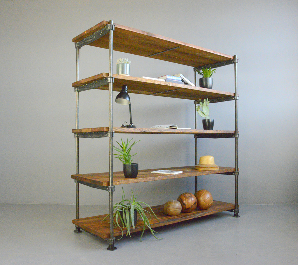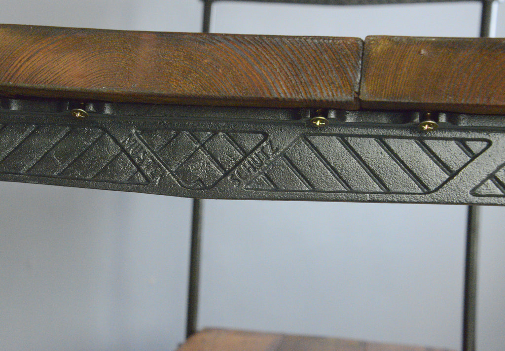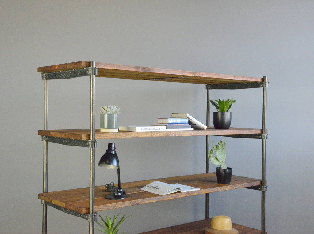 Metal parts have been burnished and lacquered, the pine planks are salvaged boards and have been given a coat of stain and hard wax oil