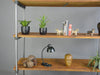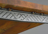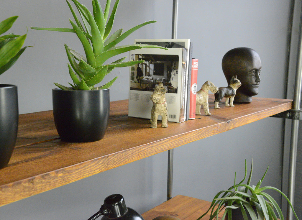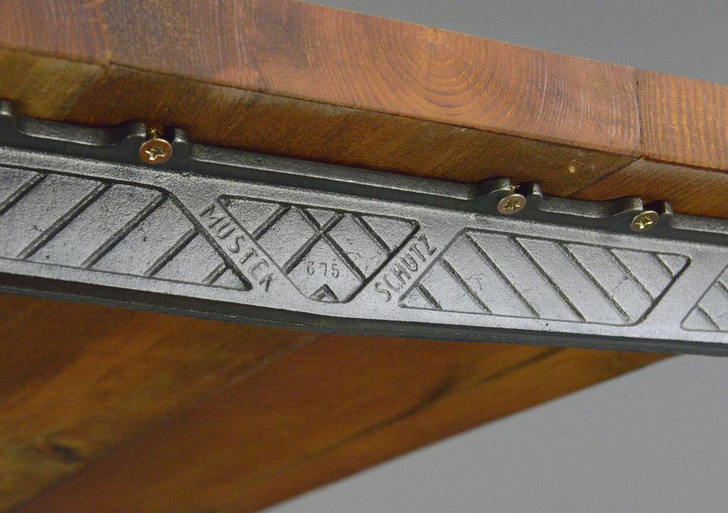 Metal parts have been burnished and lacquered, the pine planks are salvaged boards and have been given a coat of stain and hard wax oil