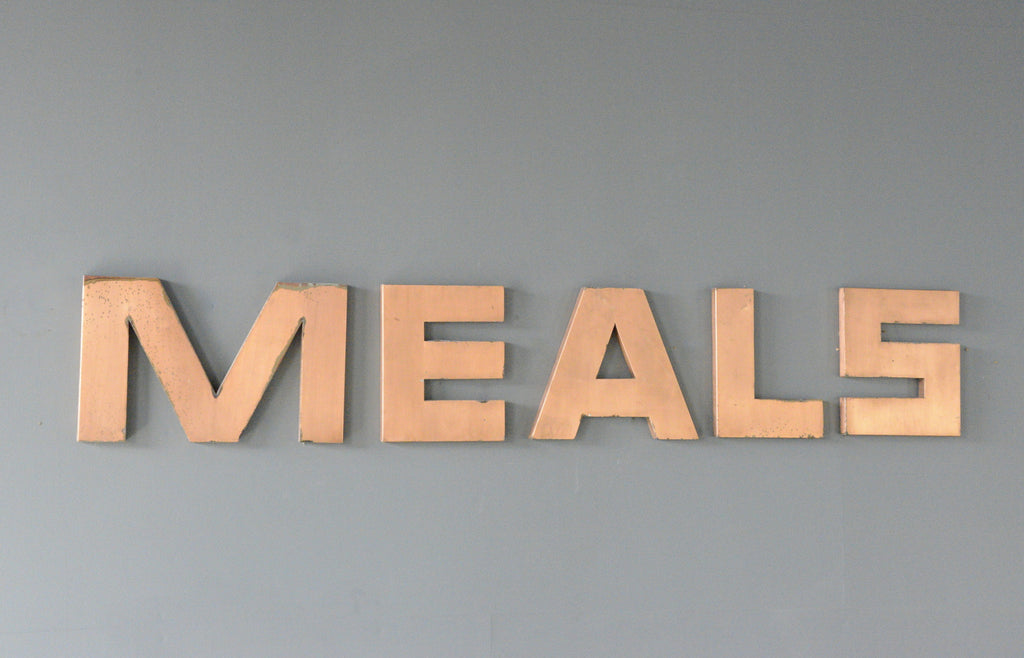 Otto's AntiquesLarge Copper Meals Sign Circa 1960s