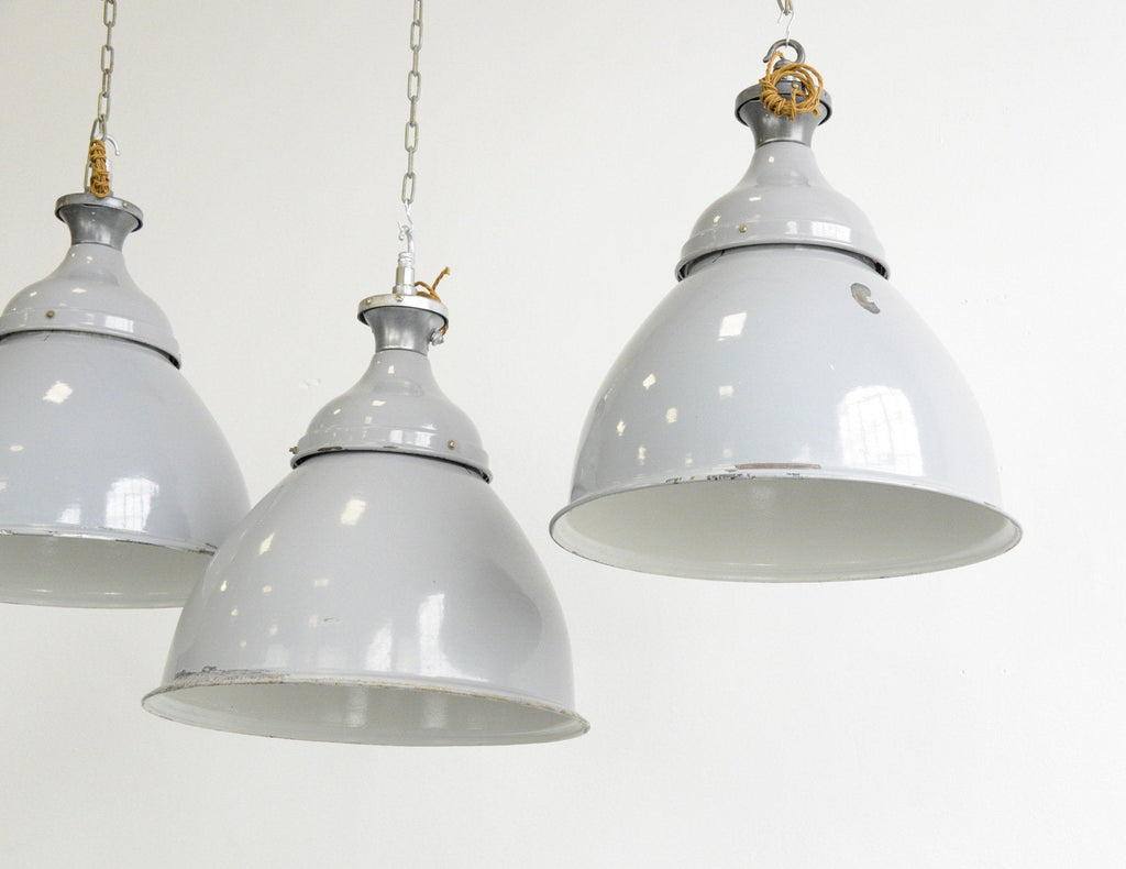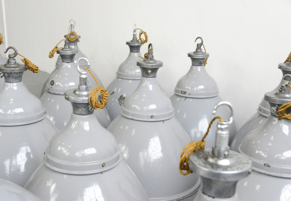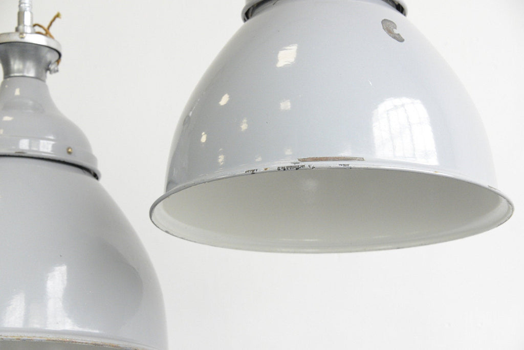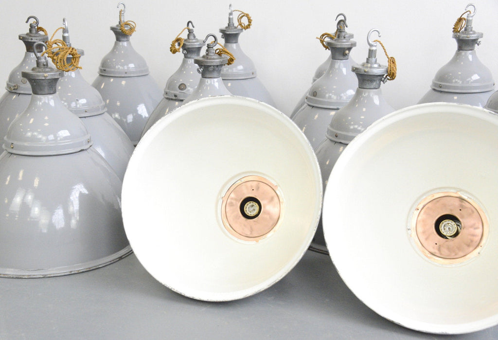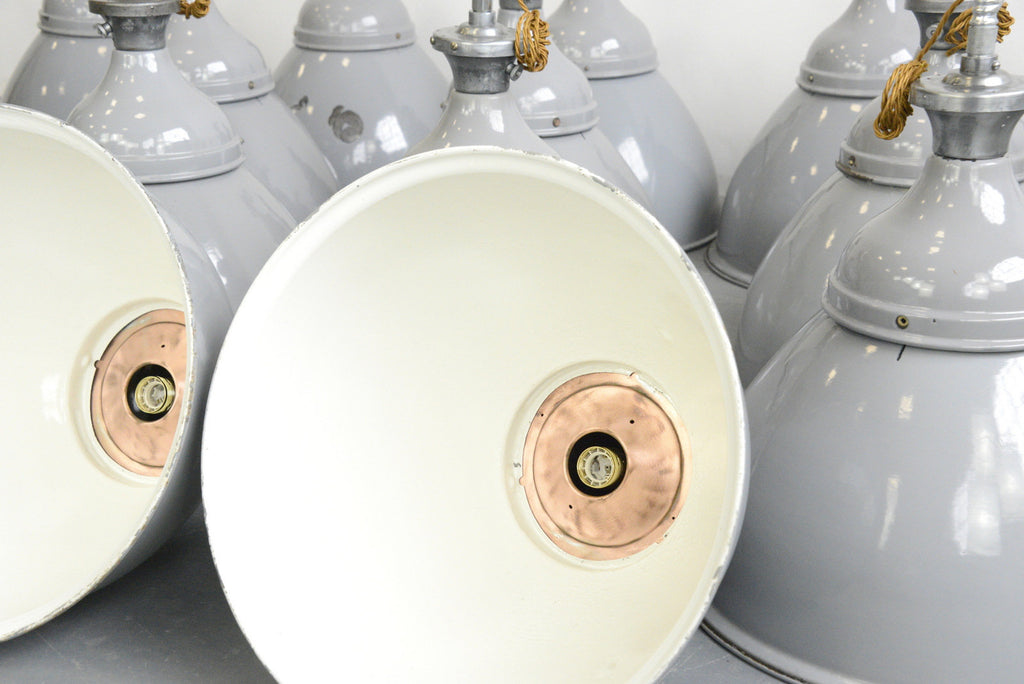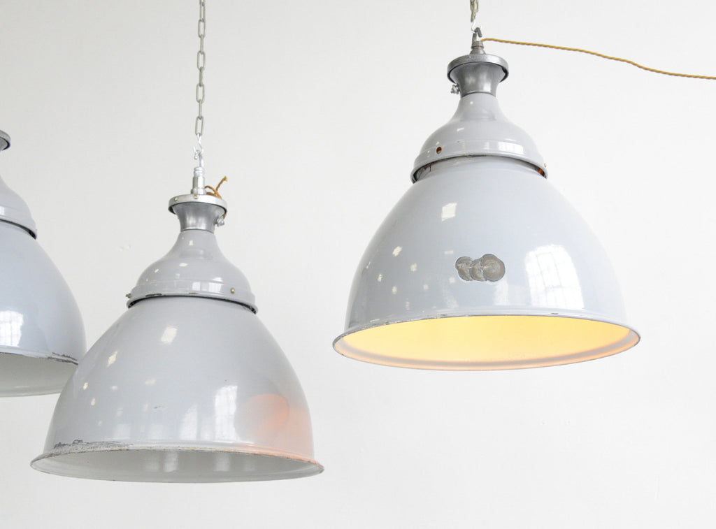 Large Grey Enamel Benjamin Factory Lights Circa 1950s