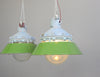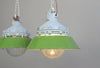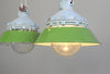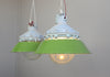 The lights have been re wired with modern electrical components, the shades show minor signs of cosmetic in places in the form of chips the the enamel and rust spots.