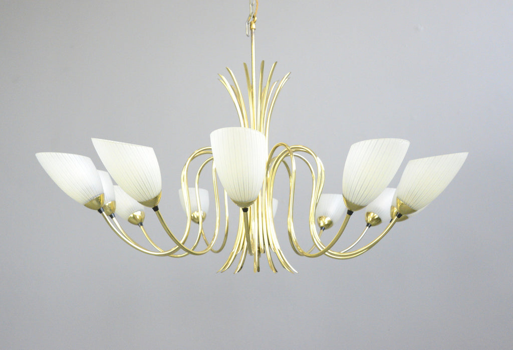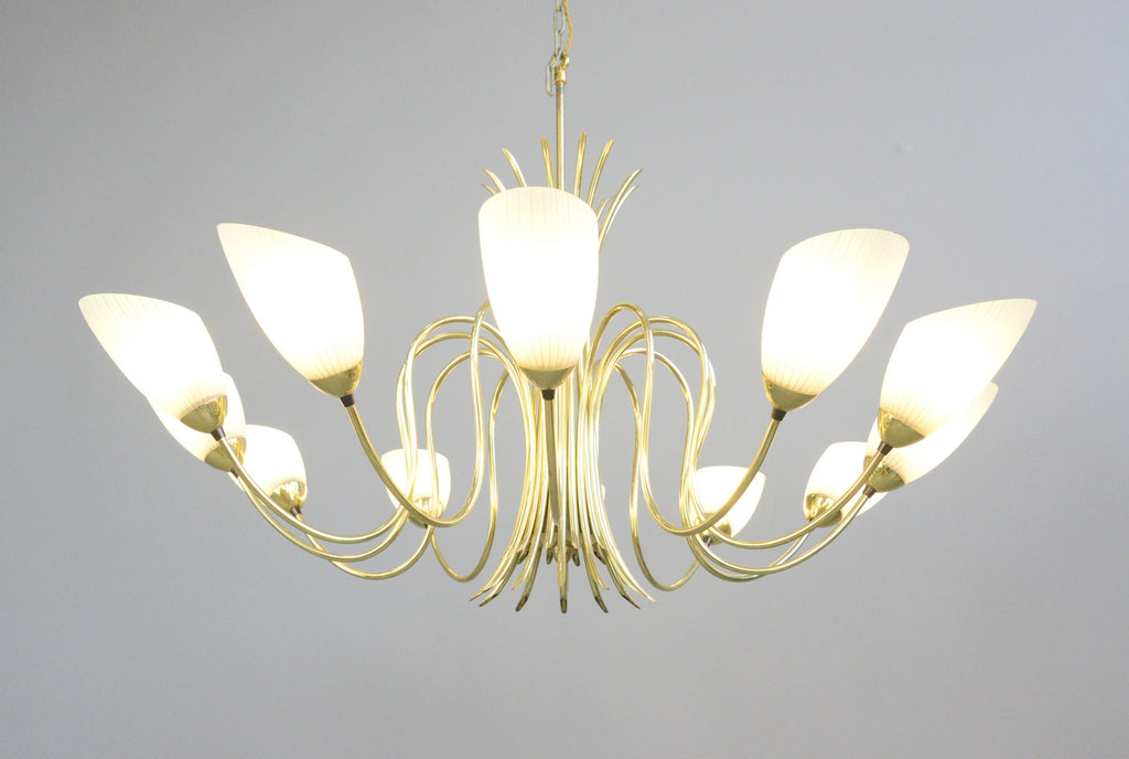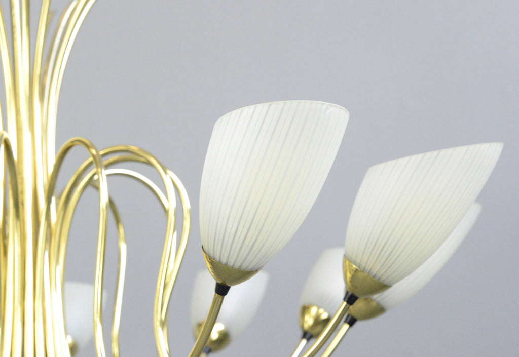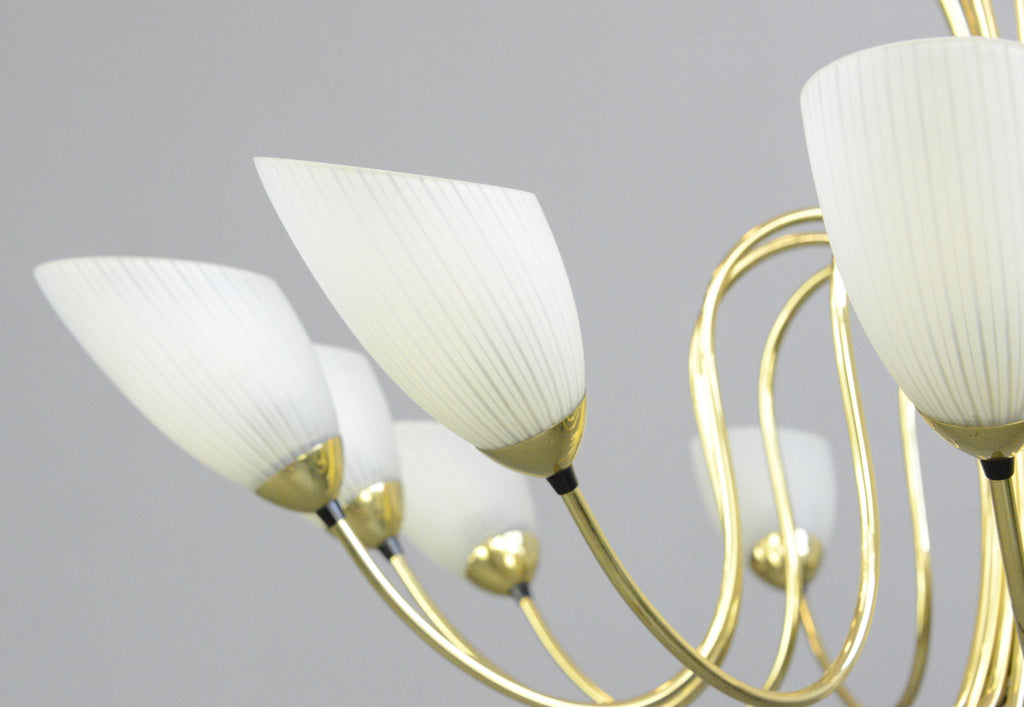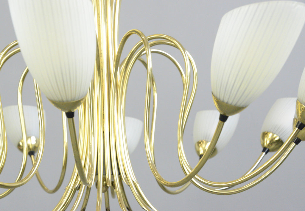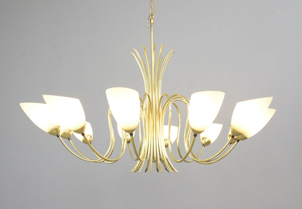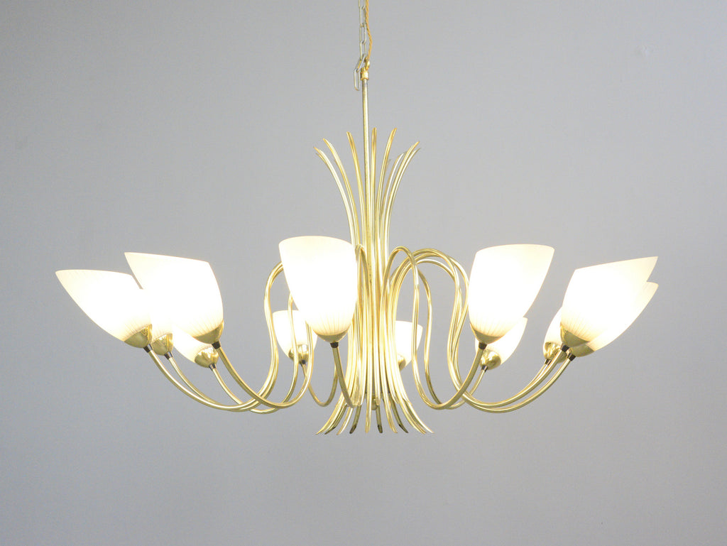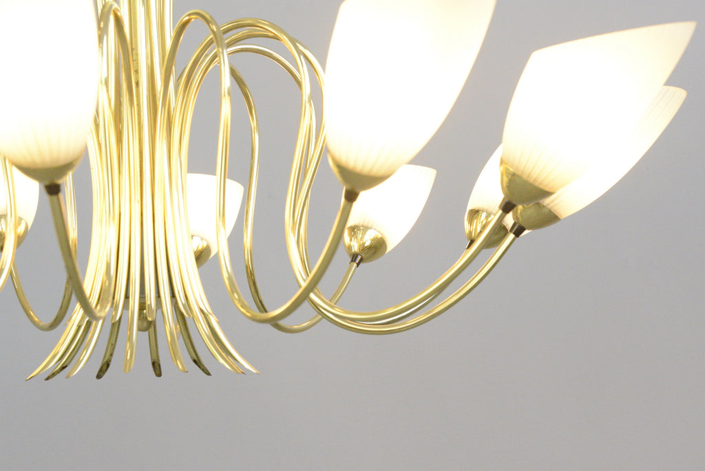 Large Mid Century Brass Chandelier Circa 1950s