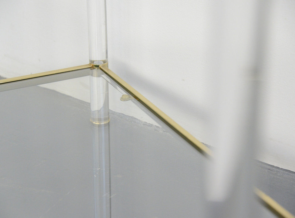 Some light patina to the brass in places no major damage to the glass or lucite.