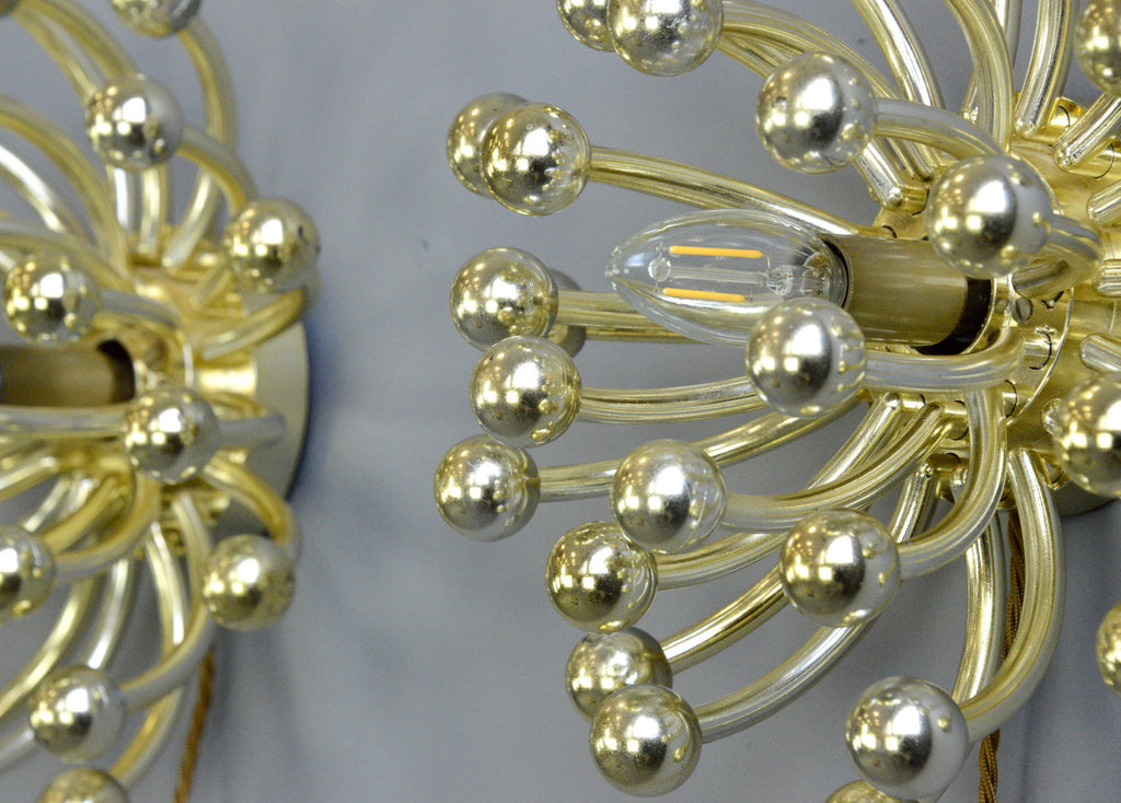 First released in 1969 by Studio Tetrach, Milan, the "Pistellino" and "Pistillo" takes its form and name from the cluster of Pistils at the heart of a flower. In nature each stem carries the pollen that will be spread by insect or wind. In this clever concept the stems and their spherical tips or gold gilded and the highly reflective surfaces help to spread the light.