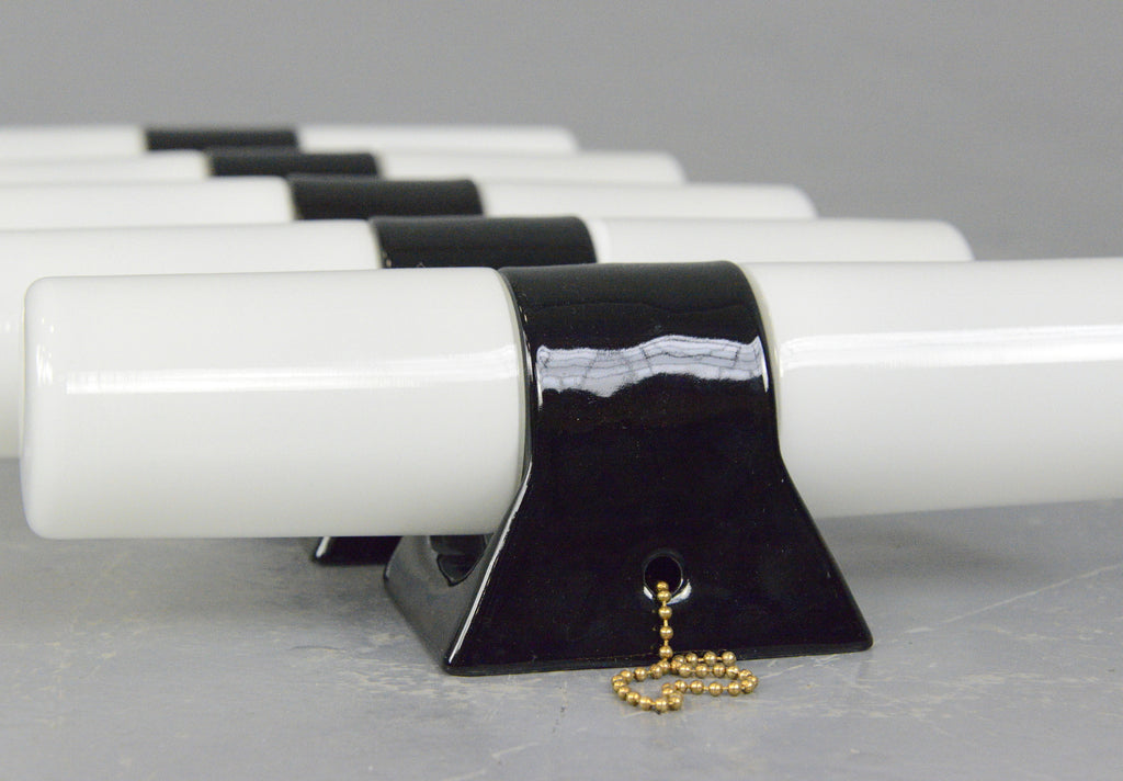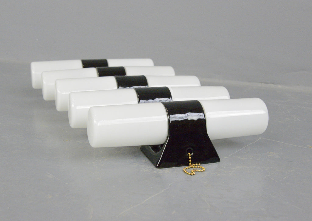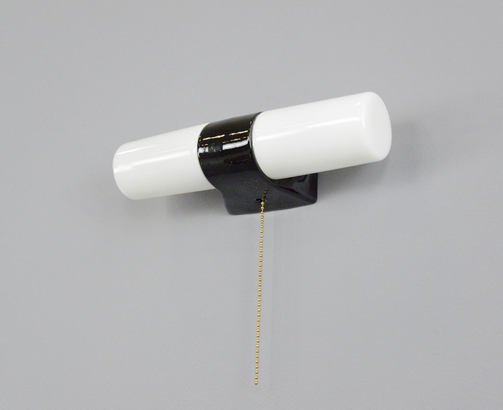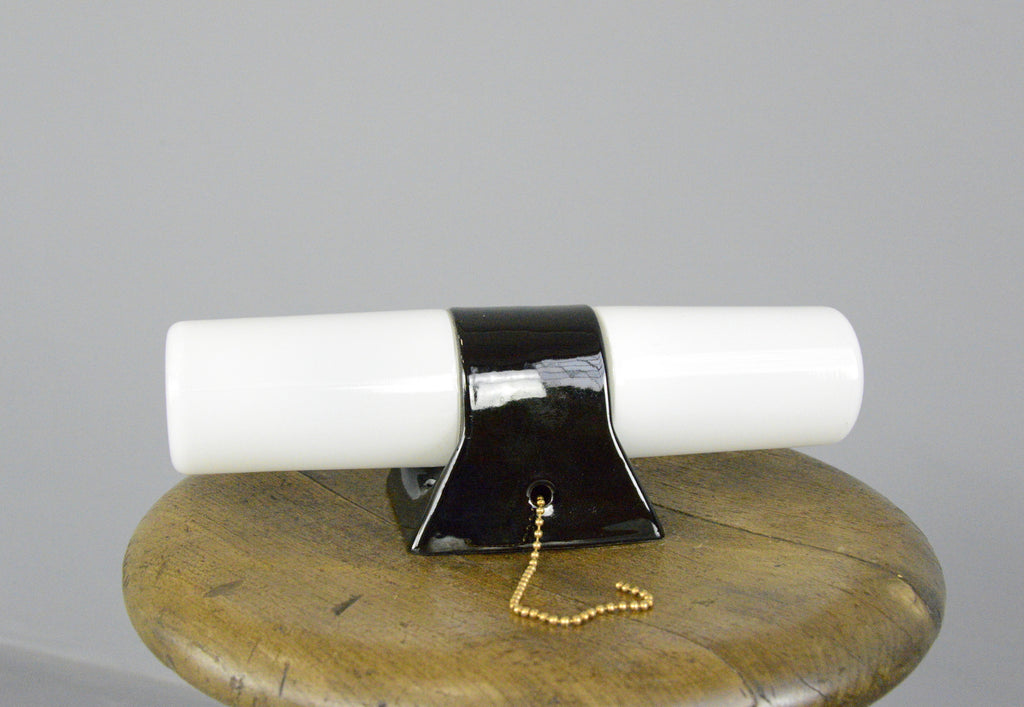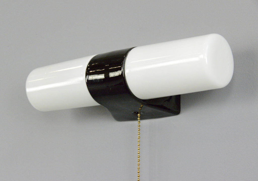 - Vitreous black porcelain housing with 2 opaline glass shade