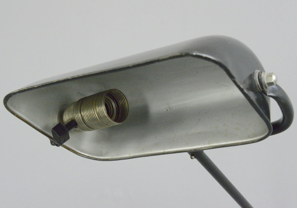 In 1926 Christian Dell, the former master of the metal workshop at the Weimar Bauhaus, was appointed director of the newly established metalwork course at the Frankfurt school of art, a post he held until his dissmissal by the Nazis in 1933. In Frankfurt, as well as teaching and practising as a silversmith he launched his career as a lighting designer. Among his earliest and most successful models were the Polo Popular (1929) and Rondella (1927/1928) desk lamps. Both were manufactured first by the Rondella factory at Oberursel and then later by Bunte & Remmler in Frankfurt Am Main.