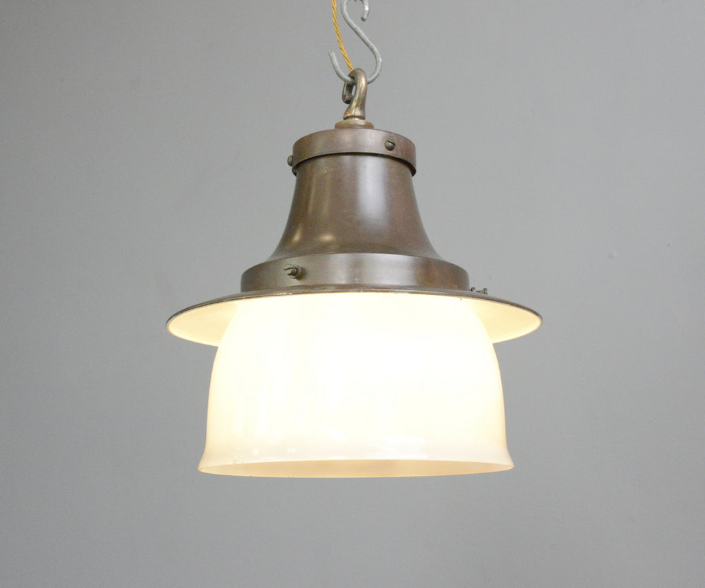 Opaline Glass & Copper Pendant Light Circa 1920s