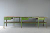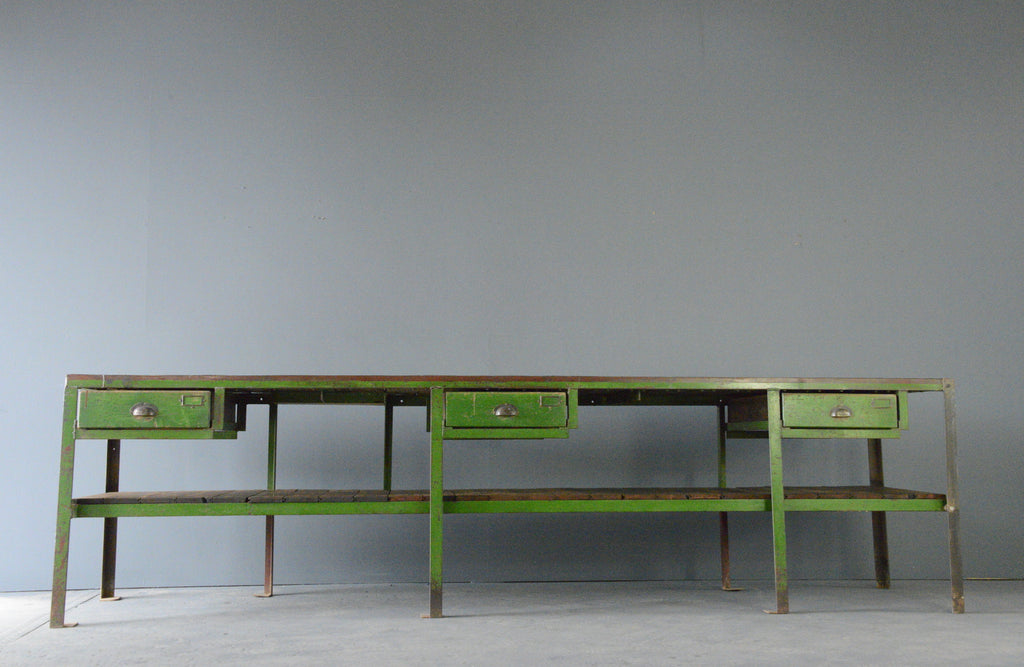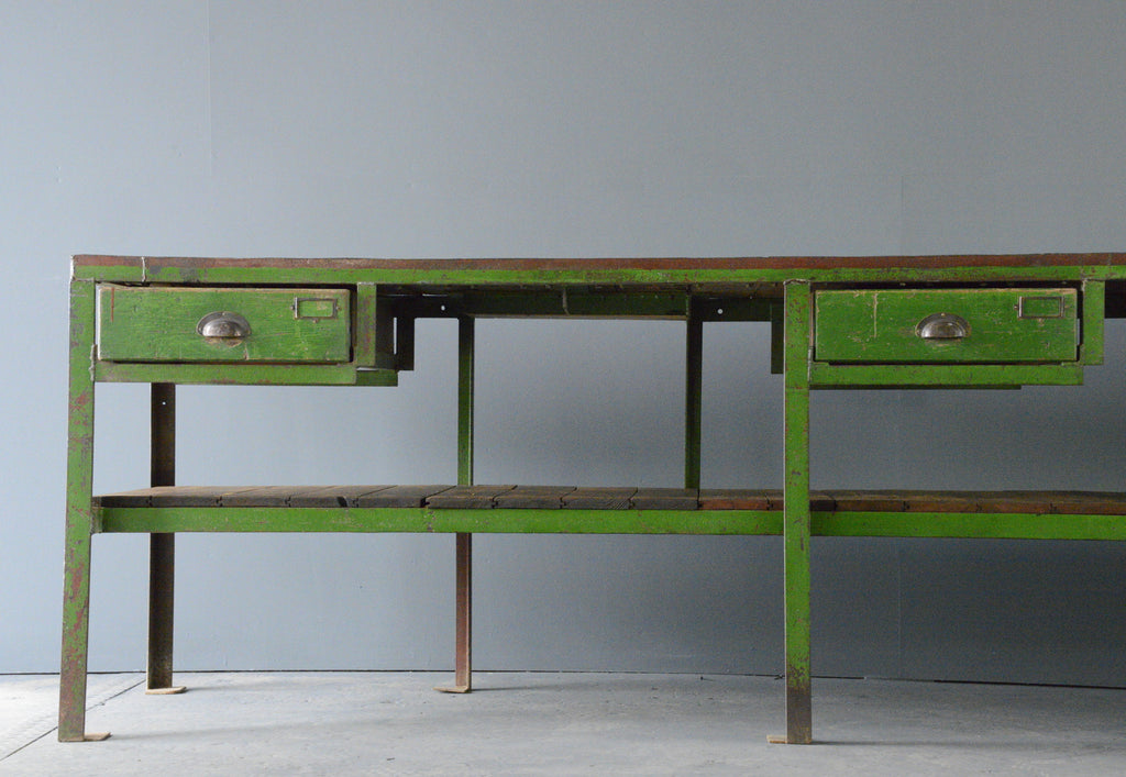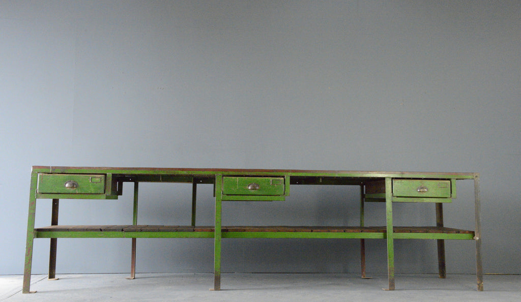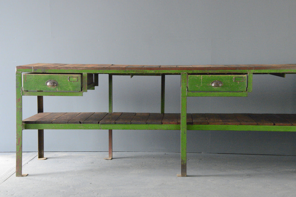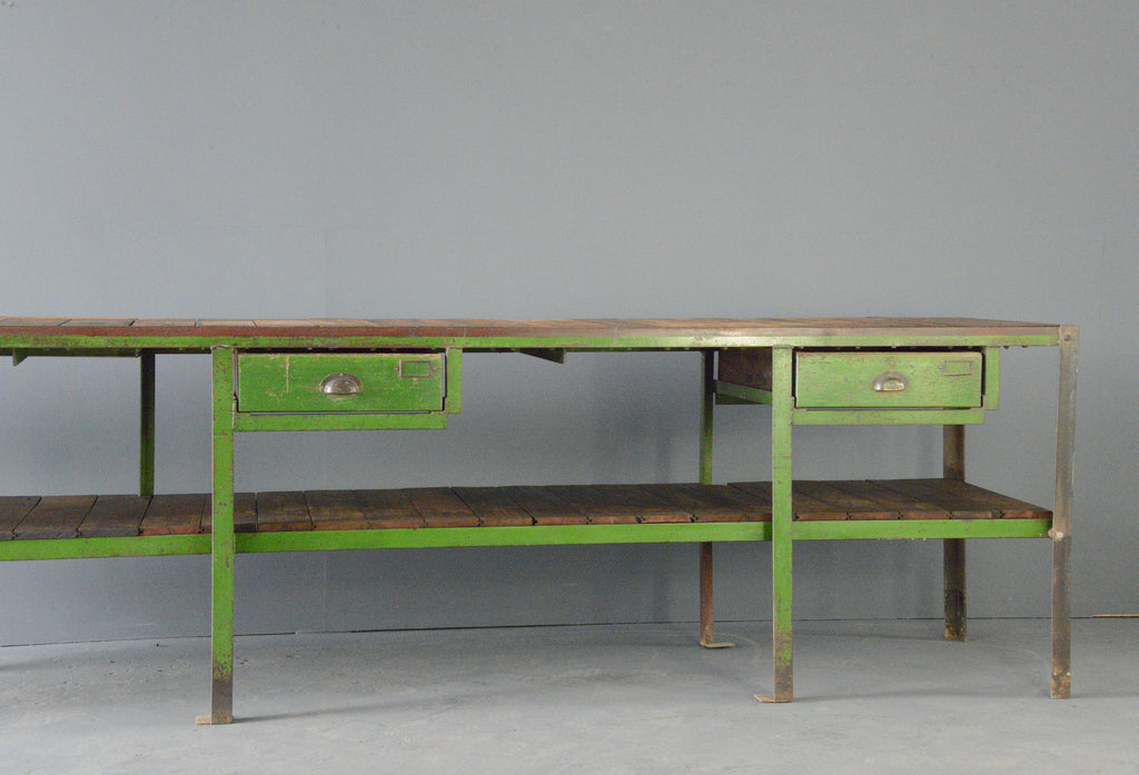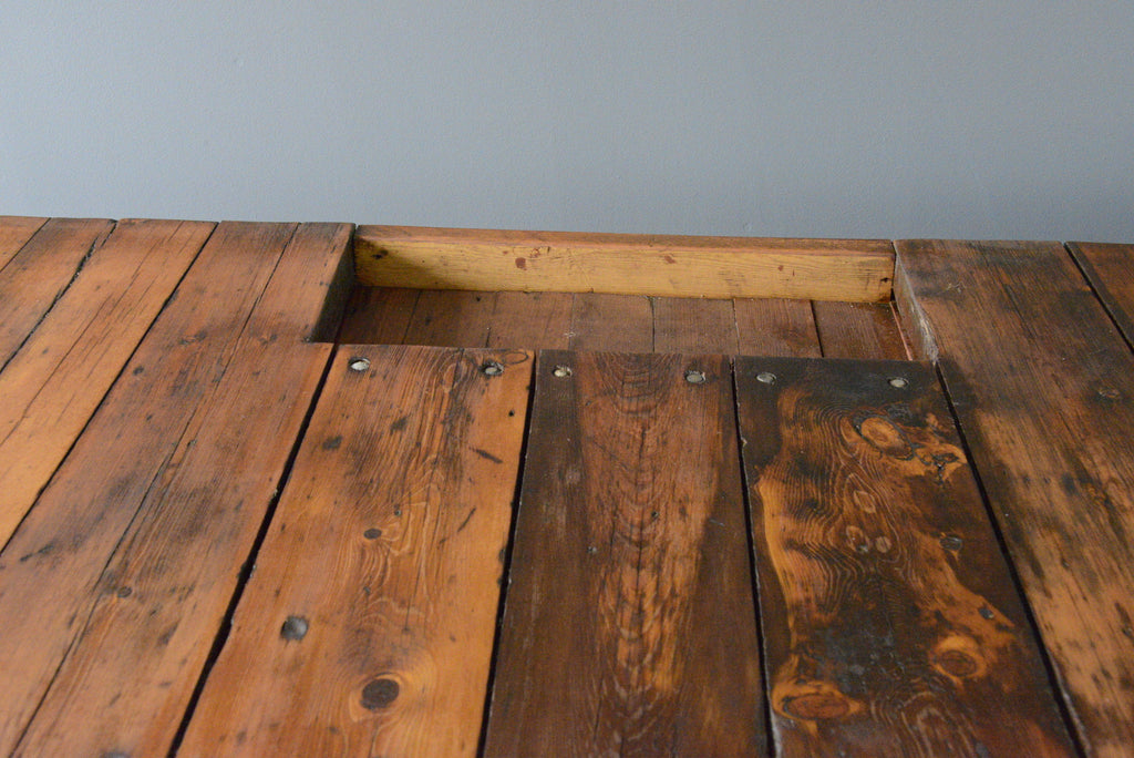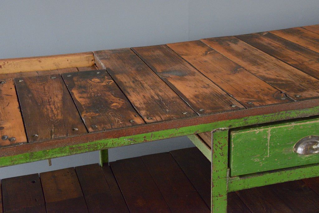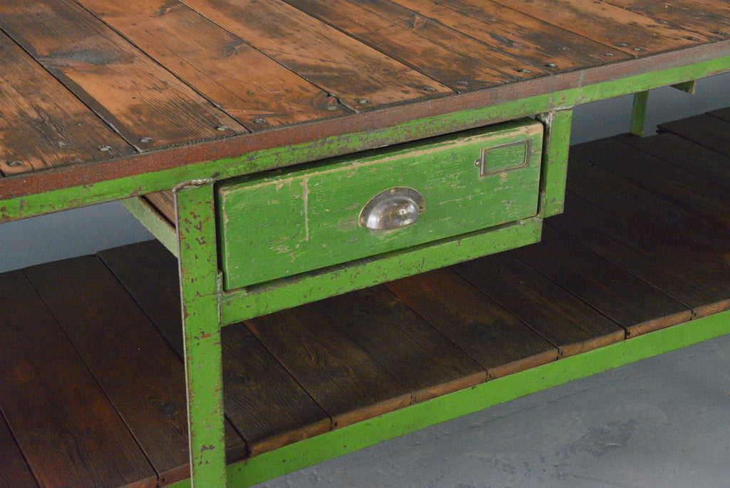 The entire bench has been cleaned and waxed, the top has been given several coats of hard wax oil so is suitable for use in a kitchen. The bench will show signs of wear in dents and chips to the paint and top.