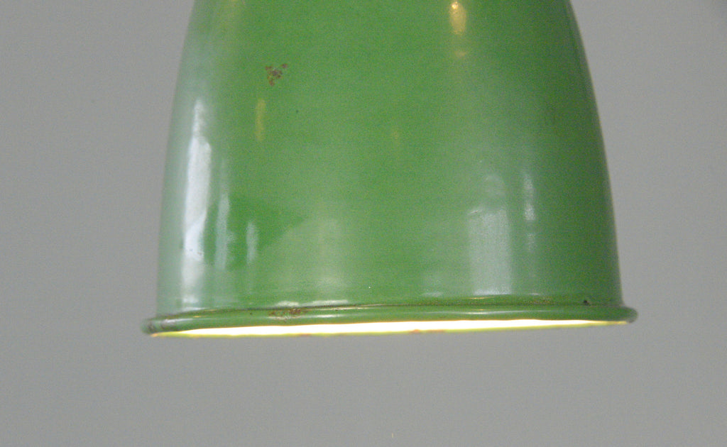 Fully re wired with modern electrical components, some patina and small chips to the enamel at the bottom tip of the inside of the shade