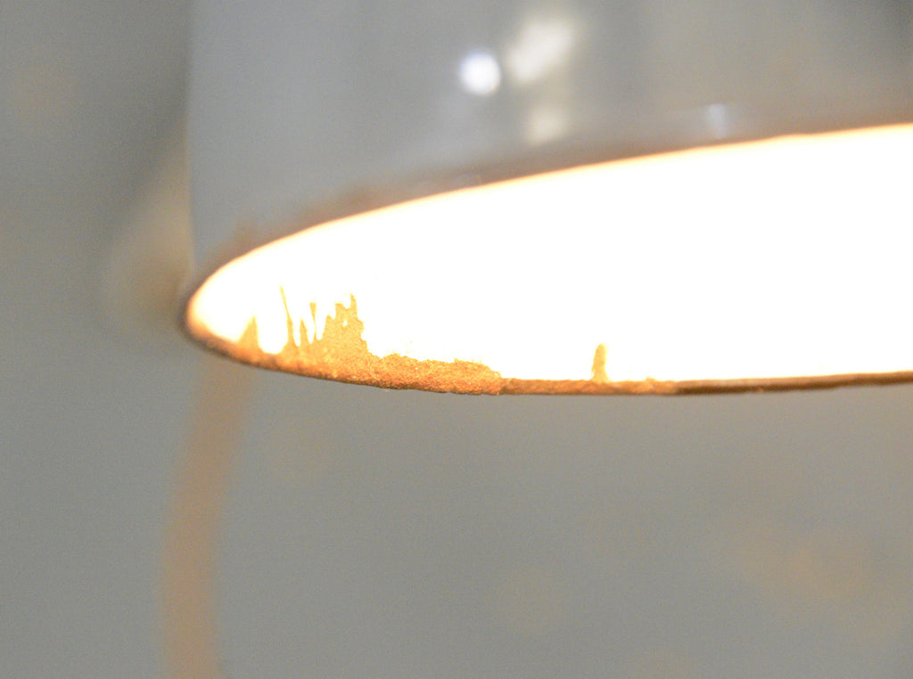 Fully re wired with modern electrical components, some chips and fading to the grey paint on the arms and some chips to the enamel shade inside and out